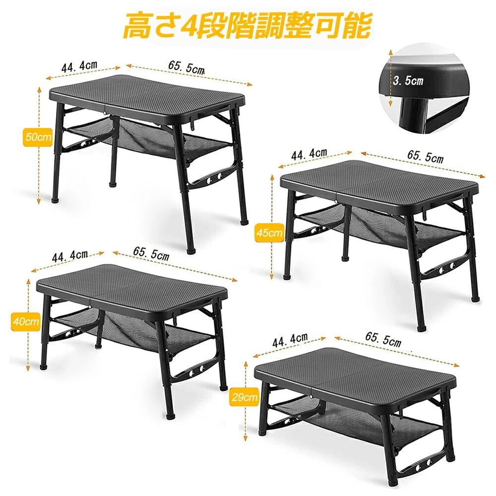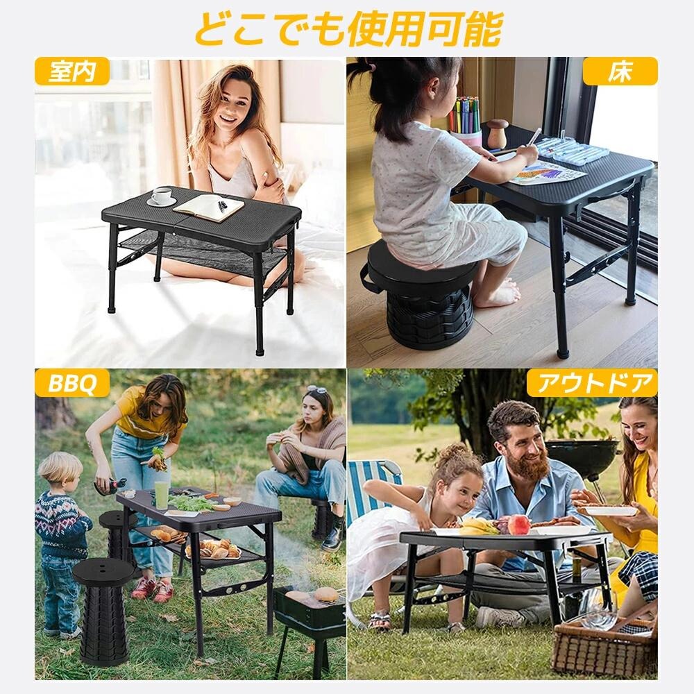 アウトドア テーブル チェアセット 伸縮式スツール 高さ調節可能 滑り止め付き 収納ネット付き 折りたたみテーブルセット(LY-ZDZD-BK)