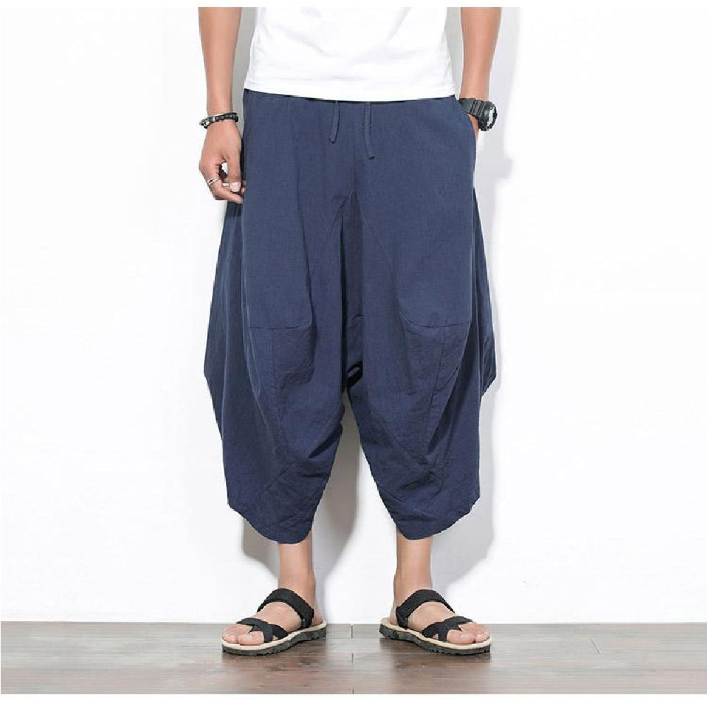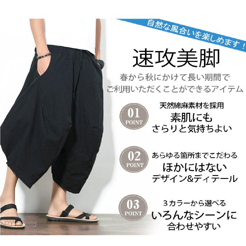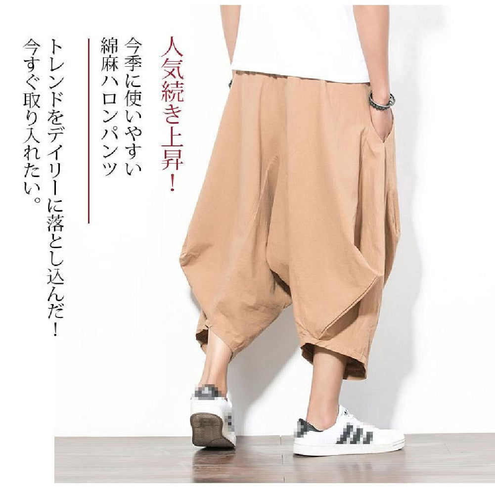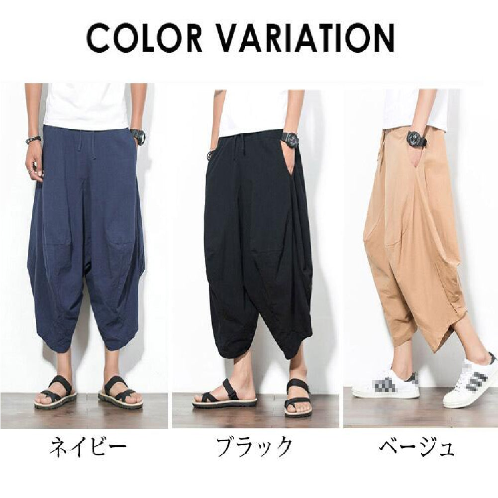 エスニック風ワイドパンツ メンズ サルエルパンツ ゆったりリラックス ウェストゴム 脱ぎ着も簡単 リラックスした着心地を実現 春夏にぴったりな素材 風通しが良く 長時間の着用でも快適 ユニセックスデザイン男性 女性 シンプルな無地 カラー カジュアル