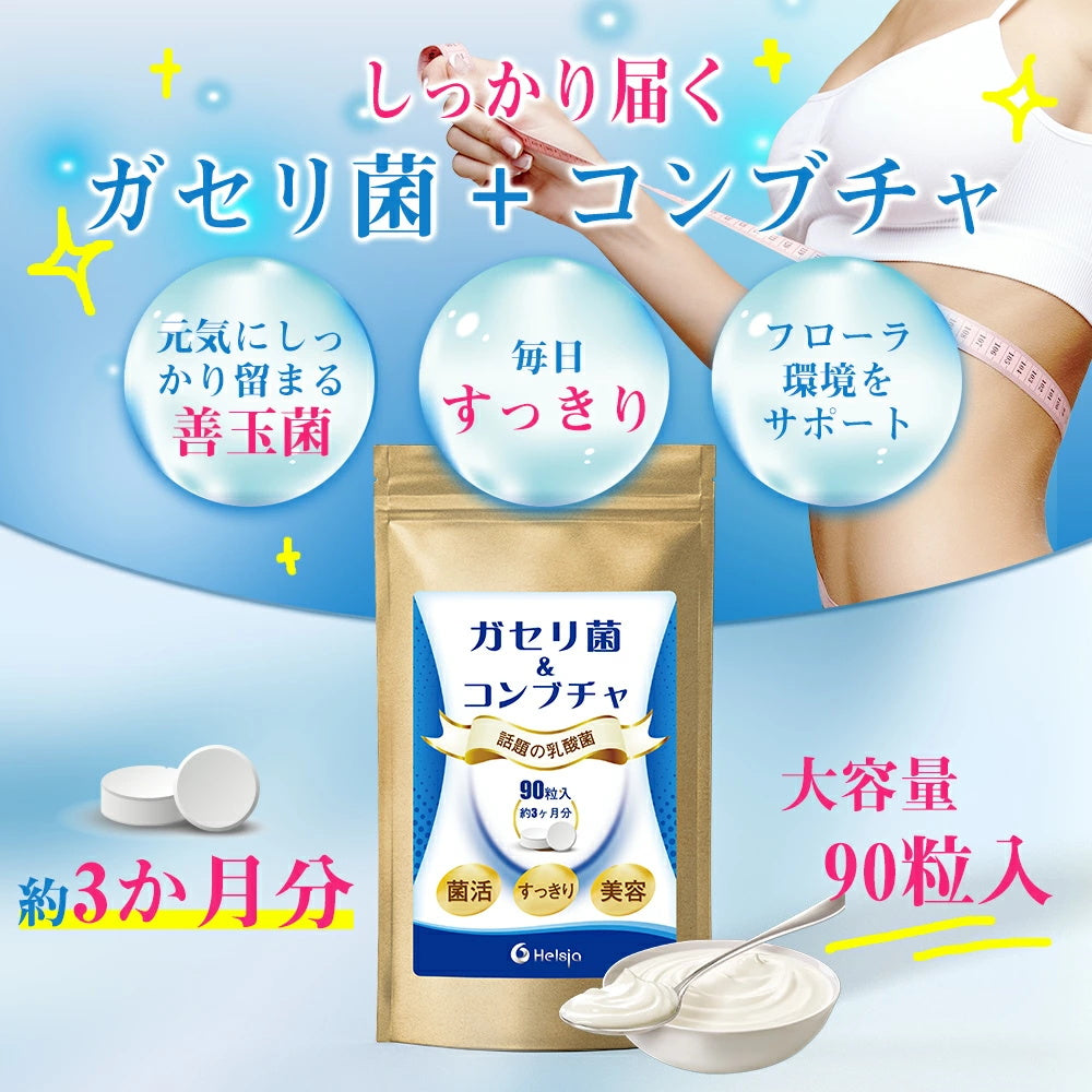 ガセリ菌 乳酸菌 コンブチャ 日本製 サプリメント ダイエット 菌活美容 酢酸菌 ビフィズス菌 腸活革命 腸活 腸内 紅茶キノコ 美容 90粒 大容量 3か月分