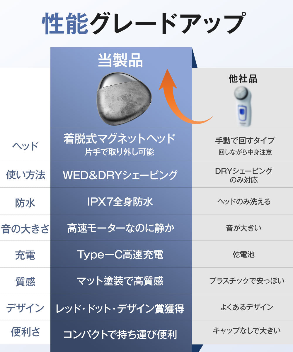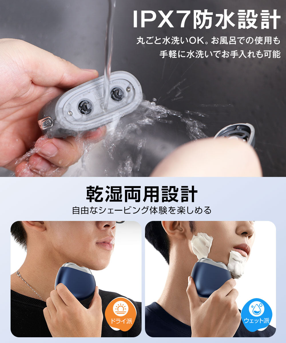 シェーバー メンズ 髭剃り 【ポケットサイズ・長時間稼働】 小型 ミニ 軽量 電気シェーバー 60日間使用可能 USB充電式 18枚刃 乾湿両用 回転式
