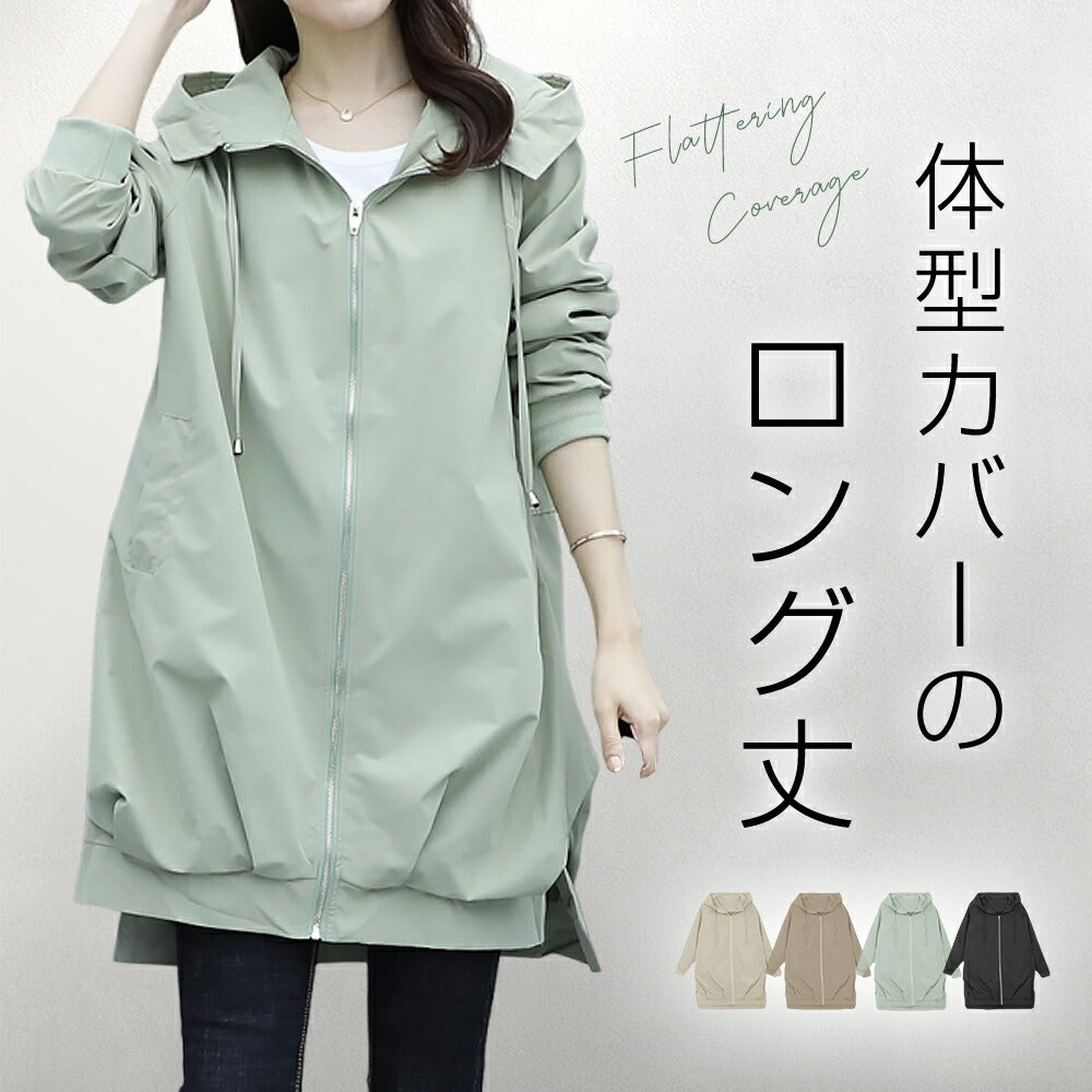ジャケット レディース 春フード付き ロングジャケット トレンチコート ショート ブルゾン 秋 マウンテンパーカー カジュアル 撥水加工 トップス ゆったり 体型カバー 袖ゴム