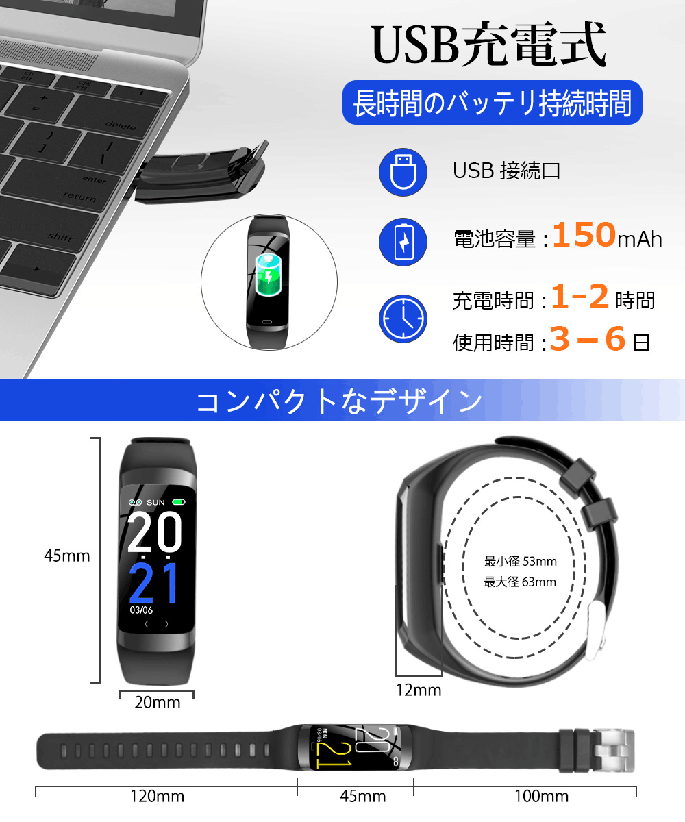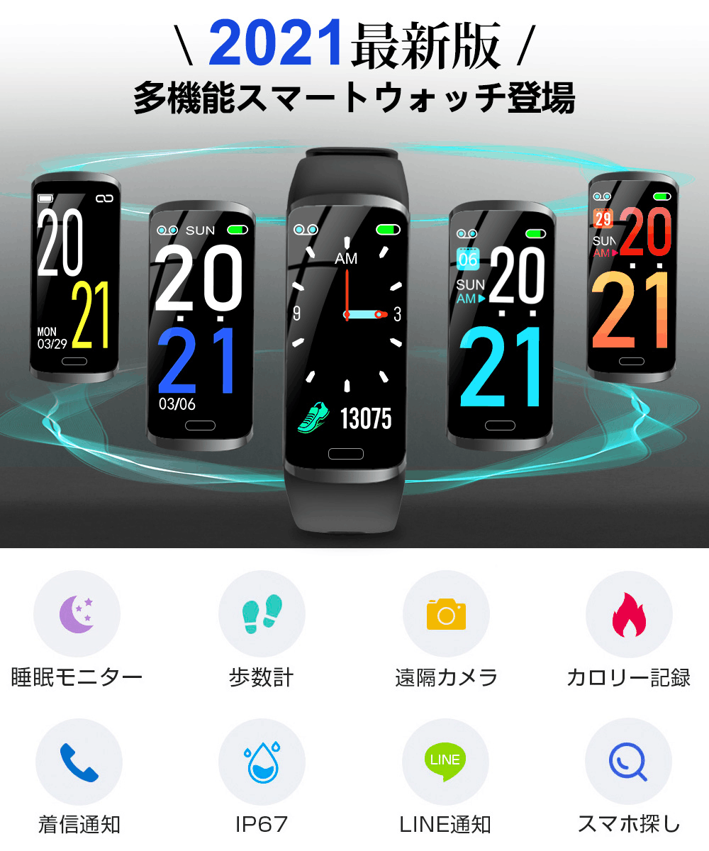 スマートウォッチ スマートウオッチ スマートブレスレット 心拍計 活動量計 腕時計 歩数計 カロリー消費 睡眠検測 Line/電話通知 アラーム 長座注意 健康サポート IP67防水 レディース メンズ iPhone/Android対応 敬老の日