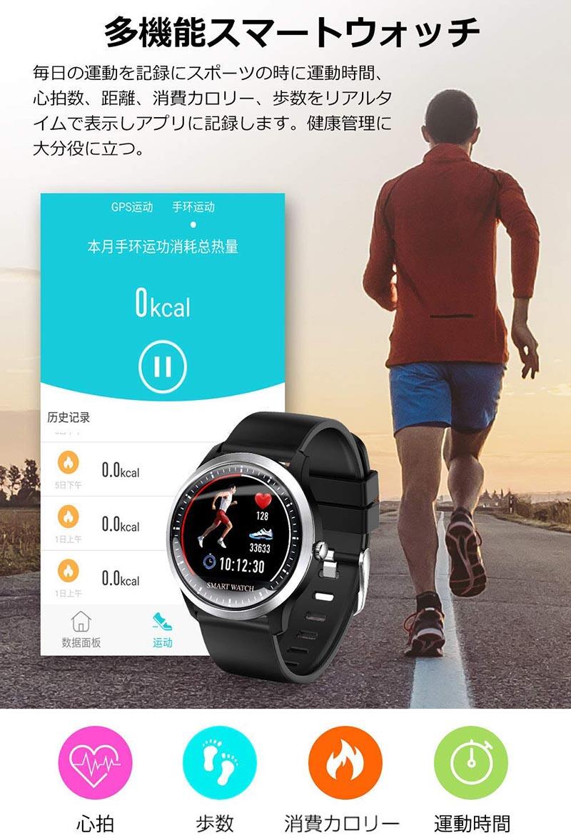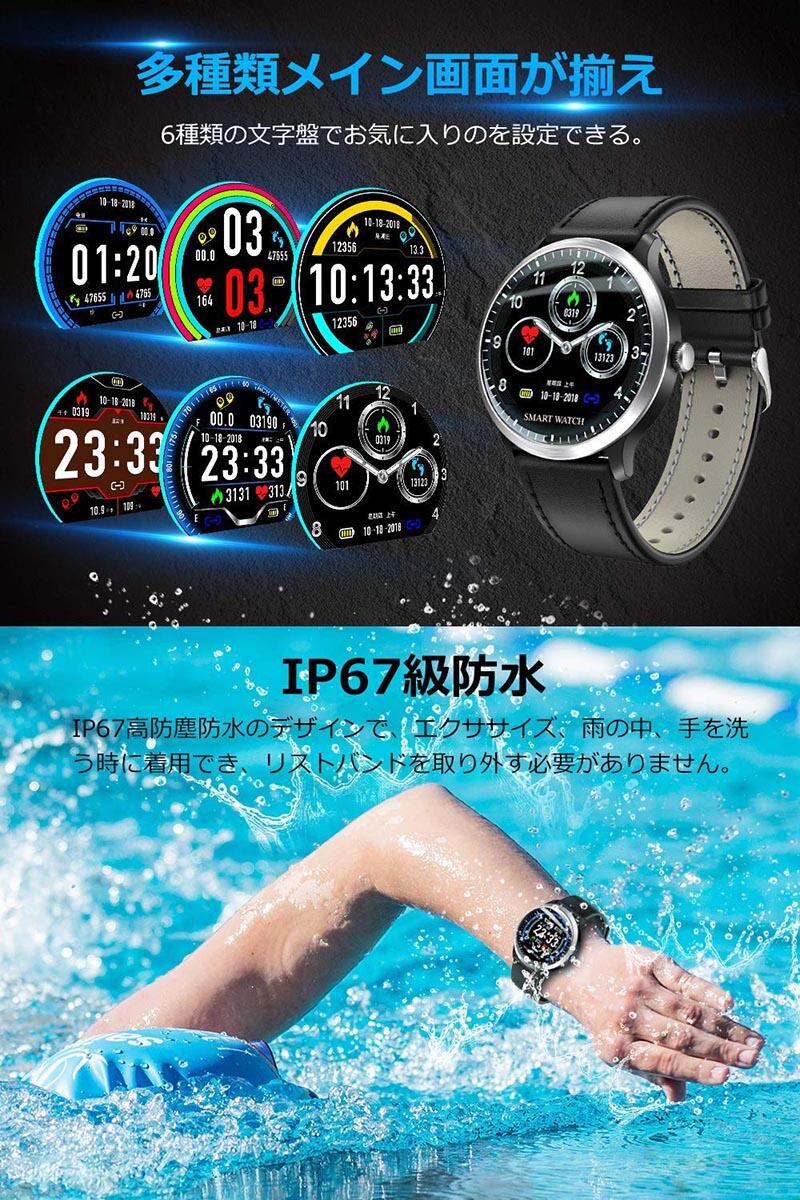 スマートウォッチ レディース メンズ スマートブレスレット 健康管理 腕時計 心拍計 運動追跡 歩数計 活動量計 消費カロリー カラースクリーン 着信電話 Line通知 GPS運動記録 日本語対応 IP67完全防水 iPhone/Android
