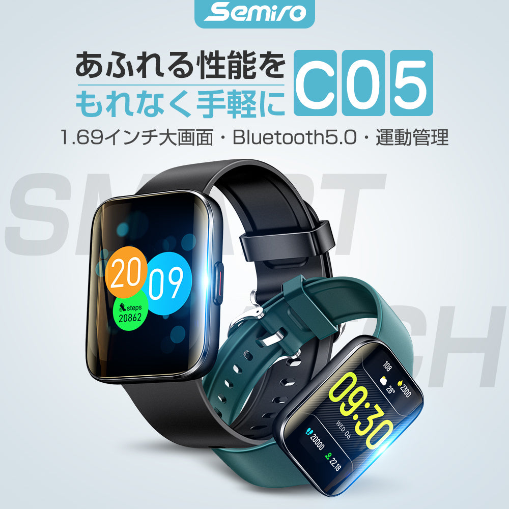 スマートウォッチ 体温測定 1.69インチ超大画面 血中酸素(C05)