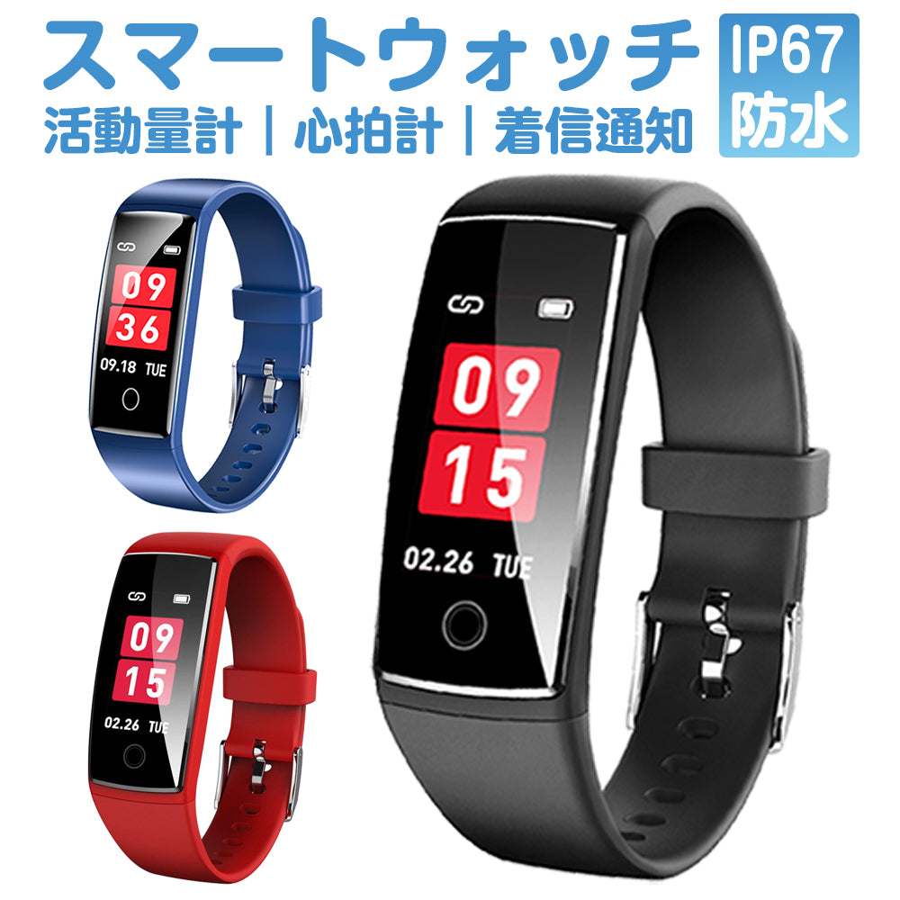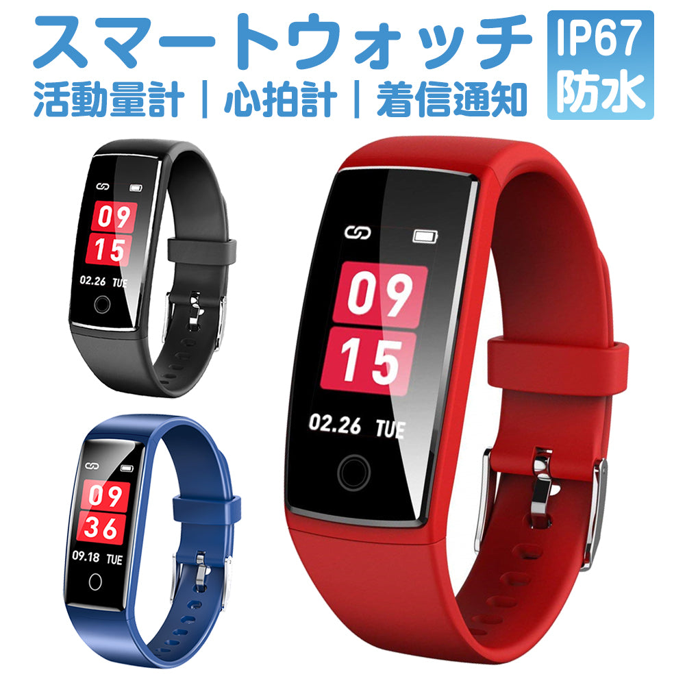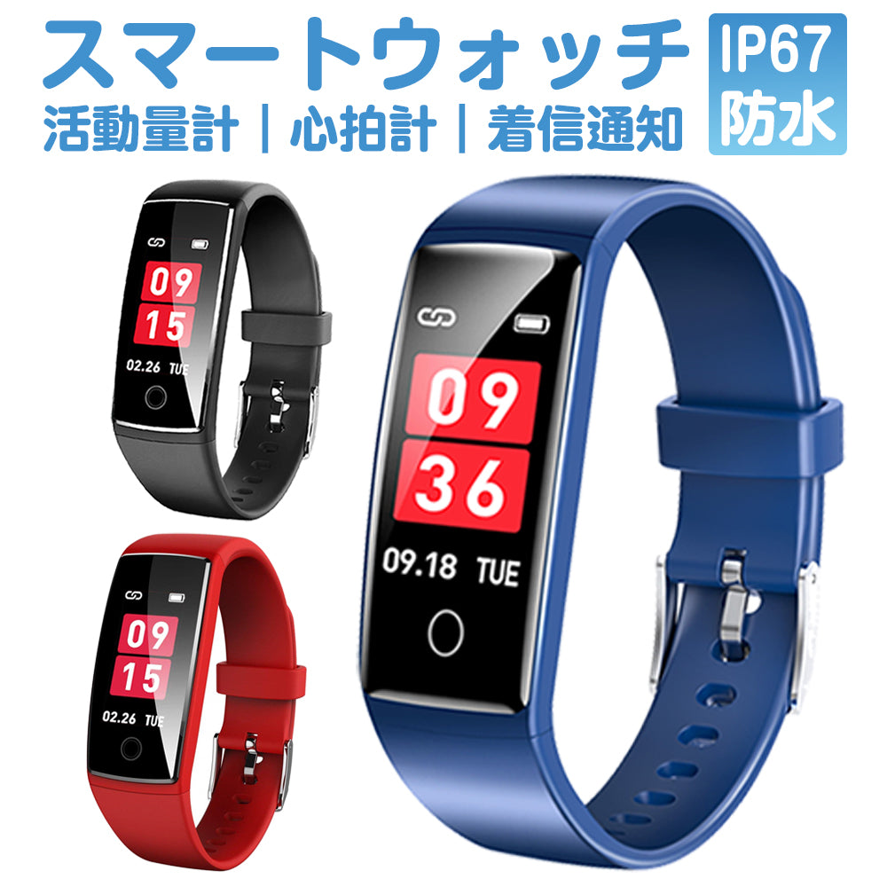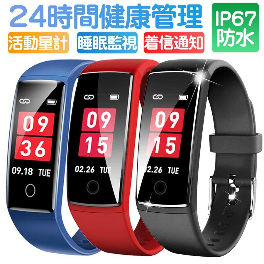 スマートウォッチ 心拍計 歩数計 スマートブレスレット カラースクリーン IP67防水 活動量計 消費カロリー 睡眠検測 スポーツウォッチ 健康サポート 電話着信/SMS/Line通知 iphone&Android対応