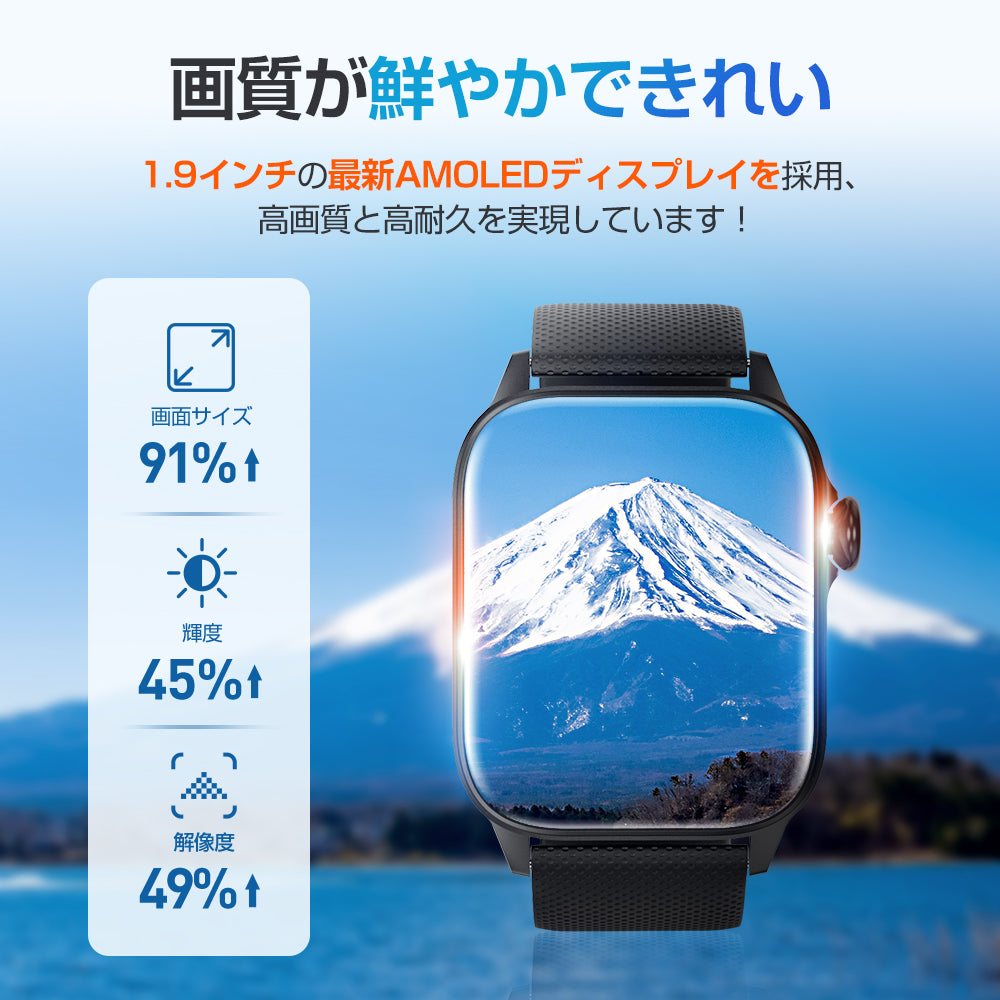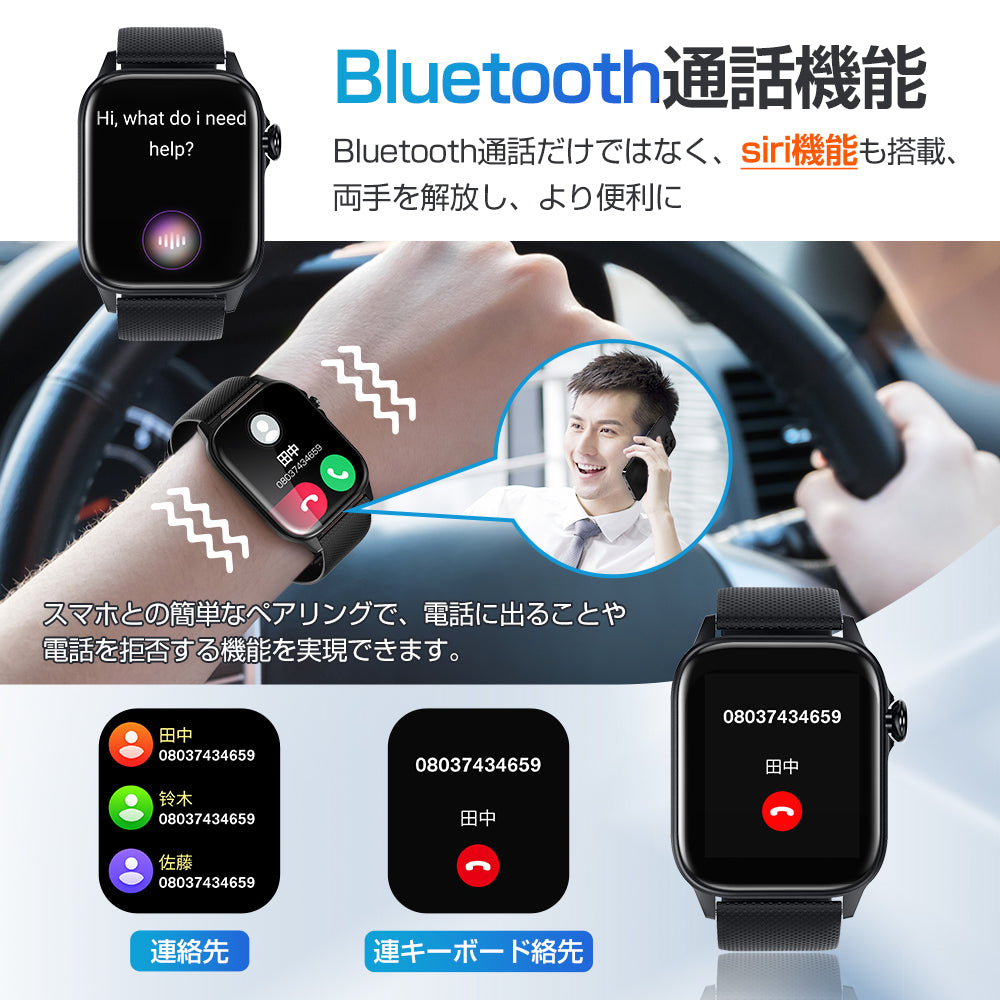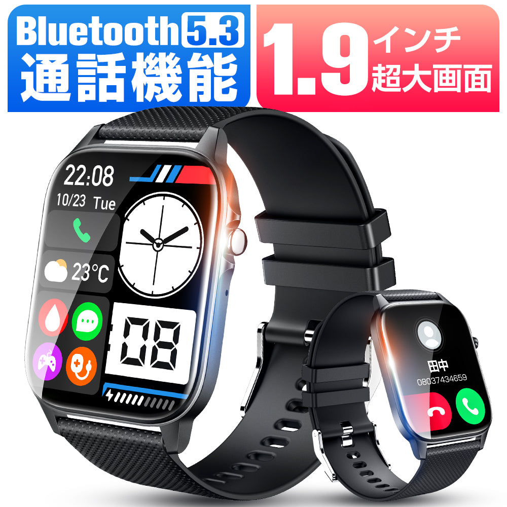 スマートウォッチ 通話機能付き Bluetooth5.3 血中酸素濃度 心拍測定 24H健康管理 着信通知(SH-A30-BK)