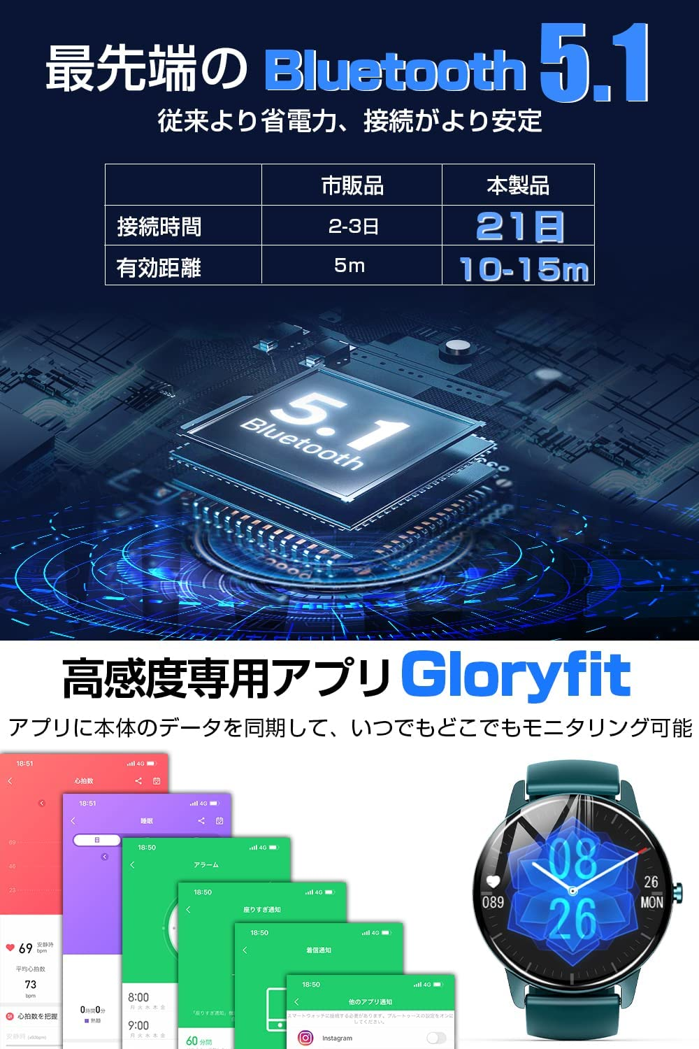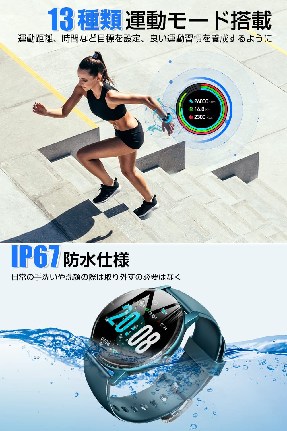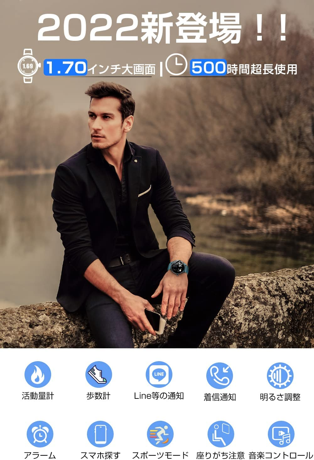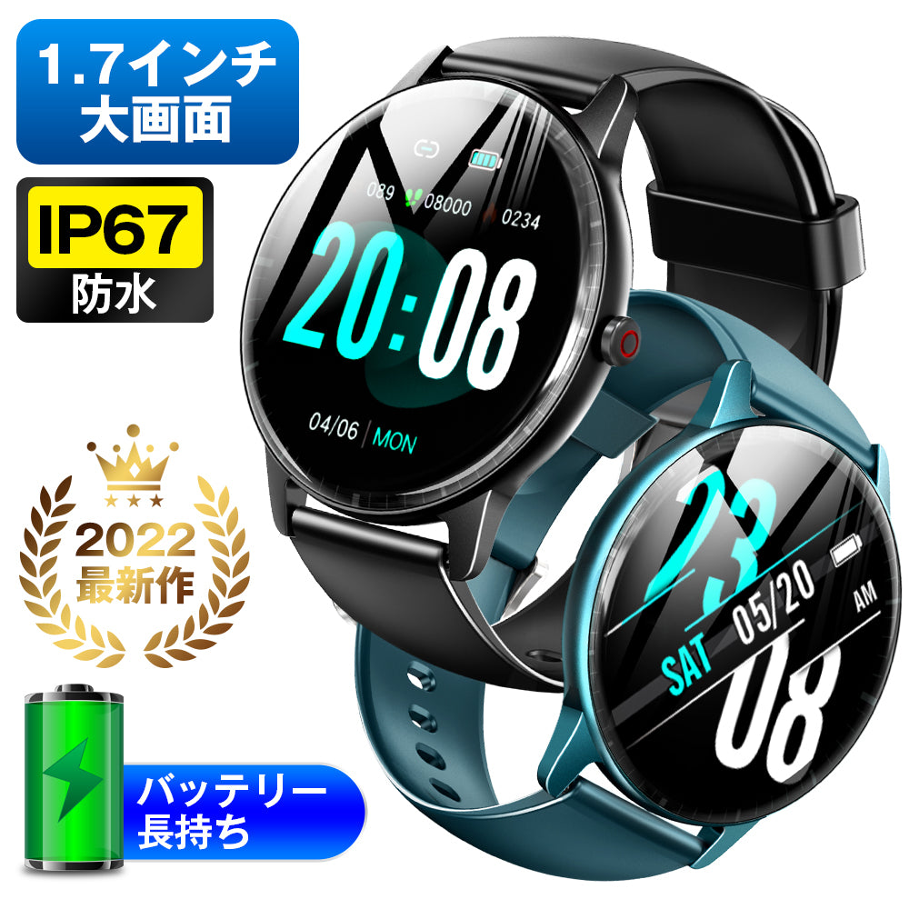 スマートウォッチ 1.7インチ大画面 Bluetooth5.1 腕時計 ストップウォッチ 活動量計 歩数計