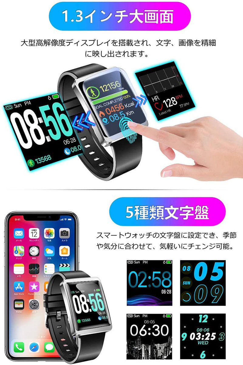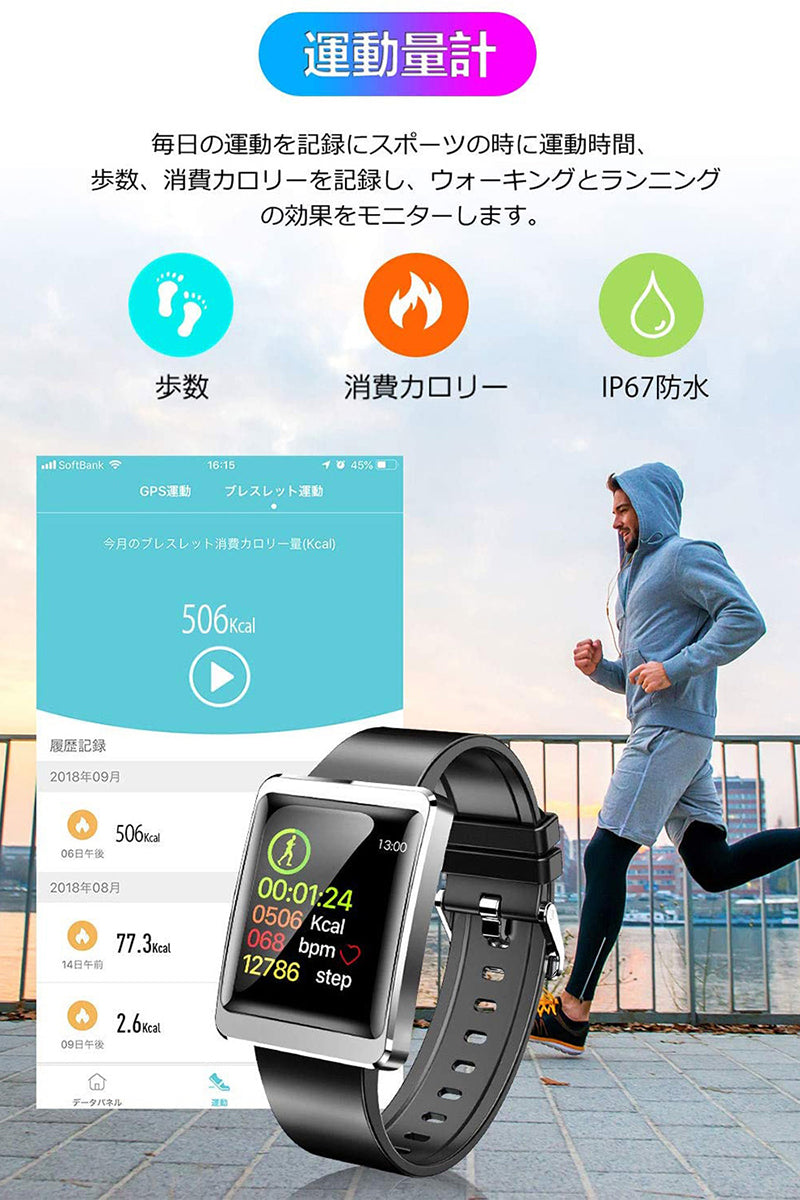 スマートウォッチ iphone&android対応 心拍計 歩数計 スマートブレスレッ(Y13)