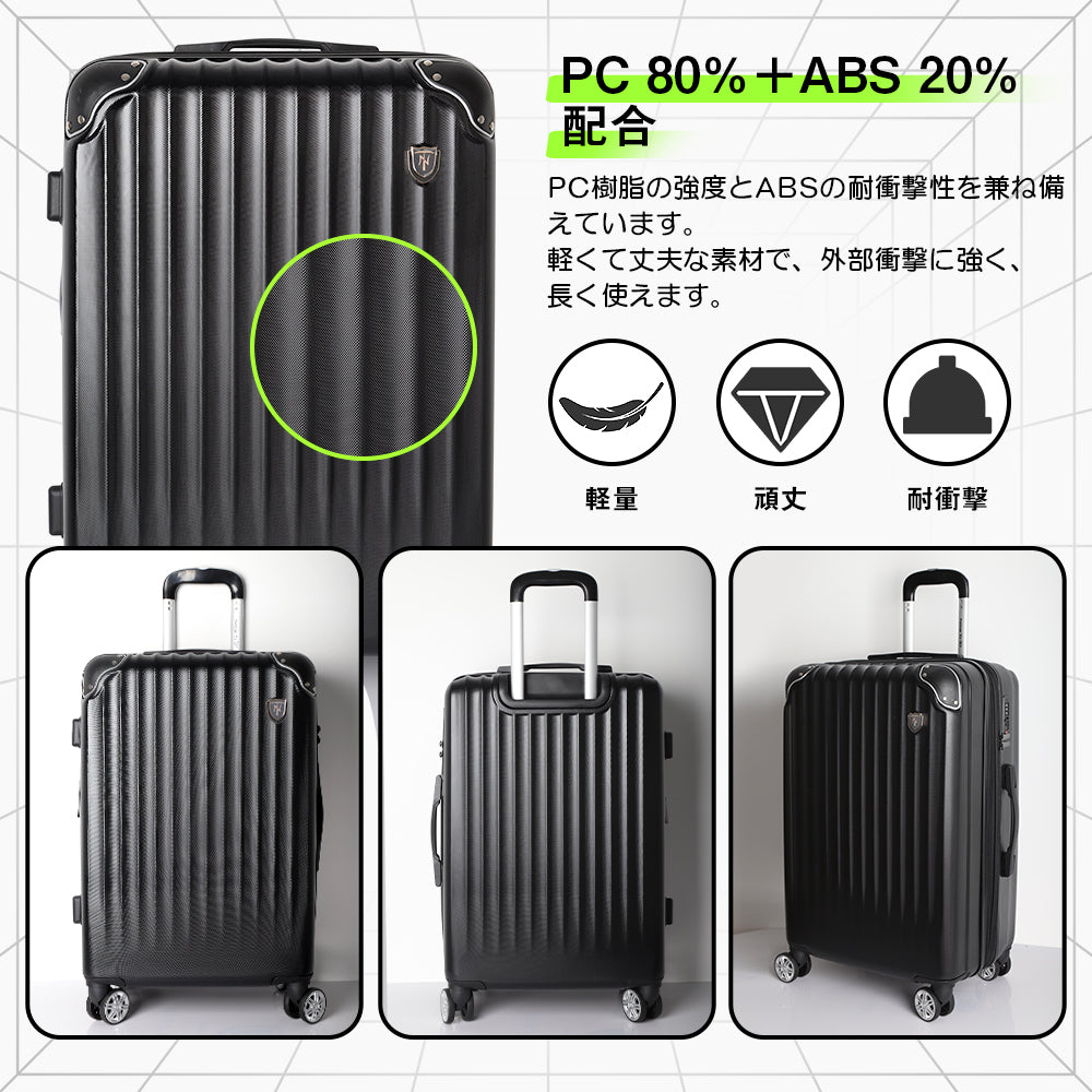 スーツケース 機内持込 大型 耐衝撃 キャリーケース キャリーバッグ 20寸 24寸 28インチ 3サイズ PC材質 超軽量 静音ダブルキャスター TSAロック搭載 旅行