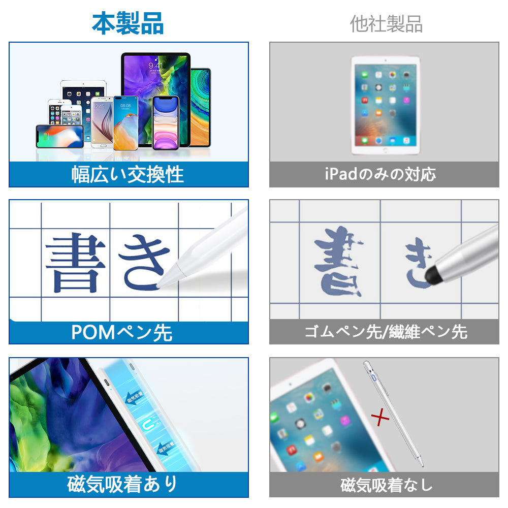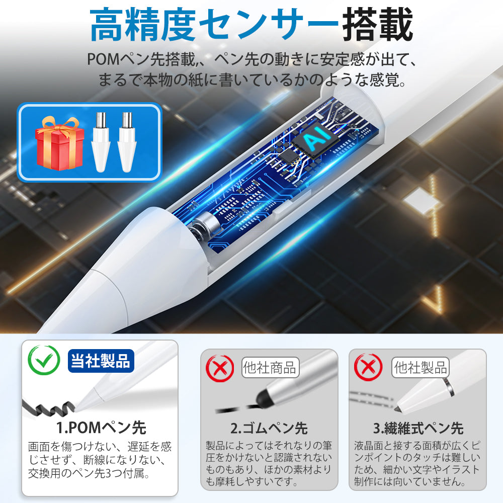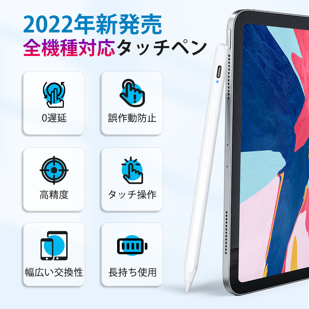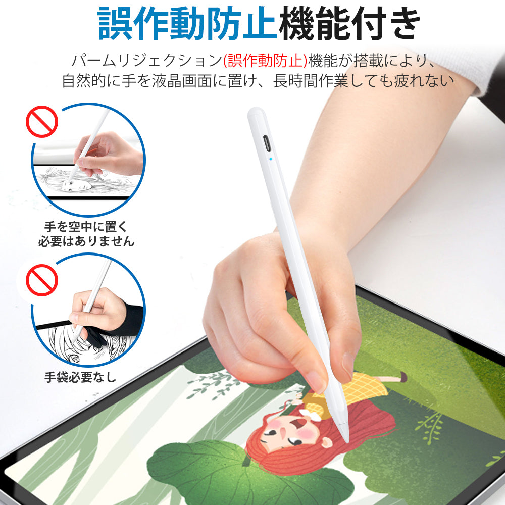 タッチペン 細い 軽量 誤操作防止 ipad iPhone Android 対応 極細 高感度 遅延なし USB充電 スマホ タブレット スタイラスペン