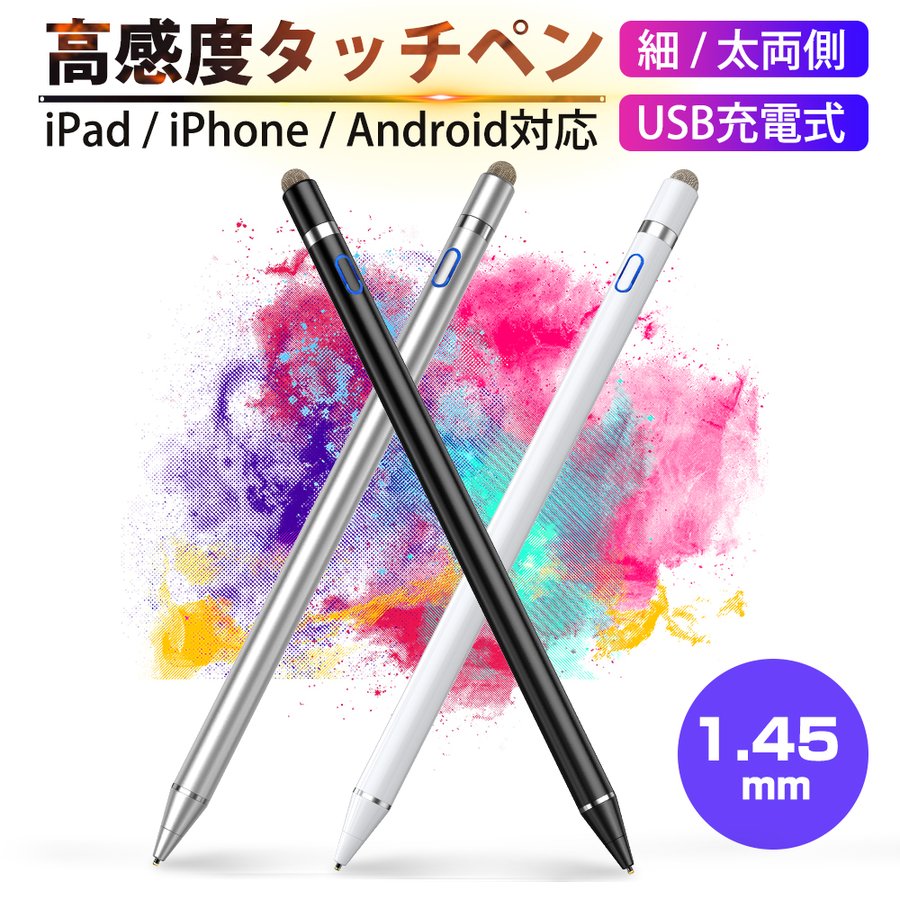 タッチペン 極細 1.45mm銅製ペン先 導電繊維ペン先 スタイラスペン 超高感度 軽量 ツムツム USB充電式 iPad/iPhone/Android スマートフォン タブレット対応