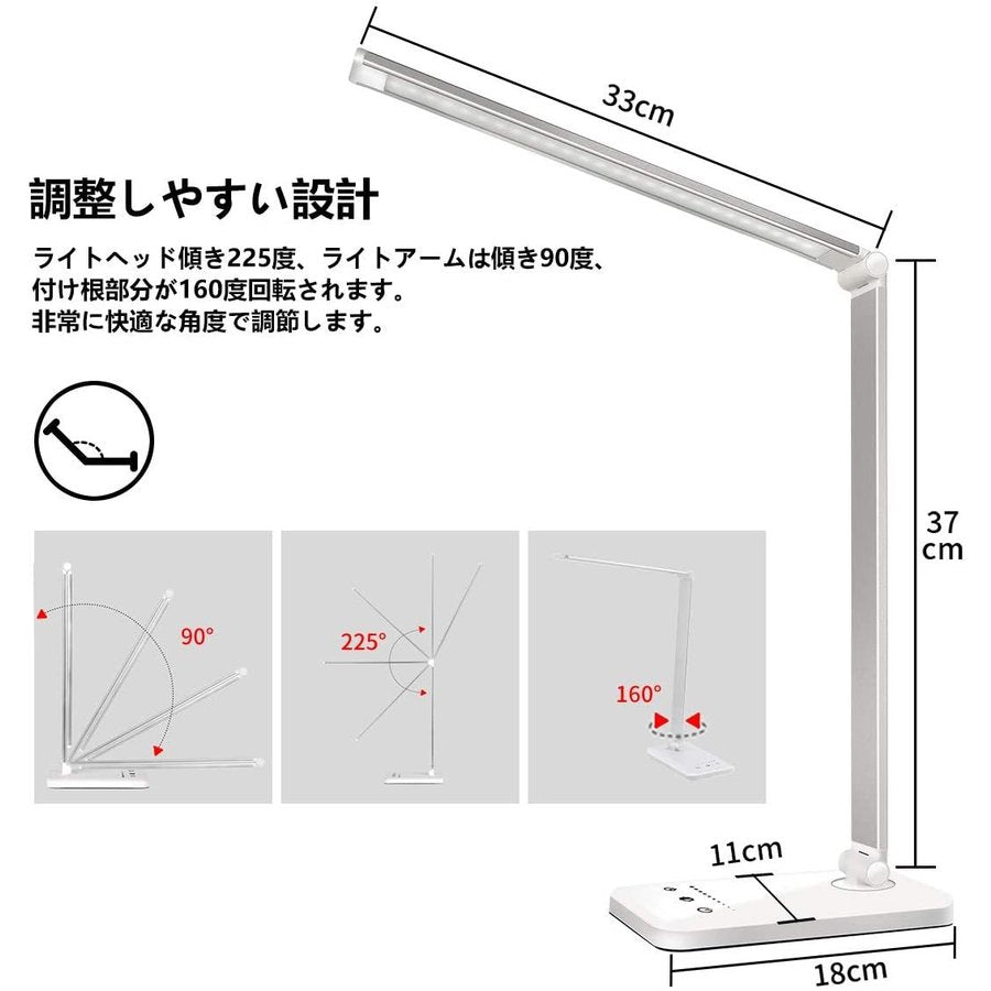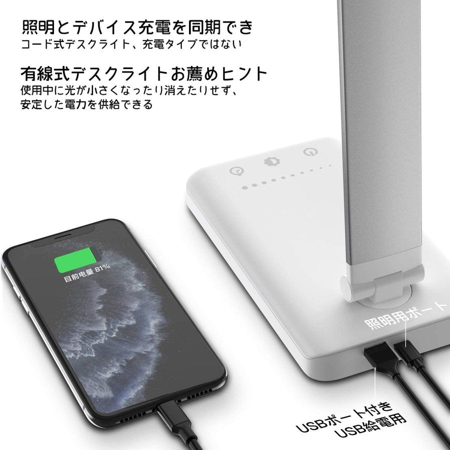 デスクライト LED 子供 おしゃれ 充電式 目に優しい 調光 明るさ調整 省エネ USB 卓上ライト コンセント 折り畳み式(TD-T01)