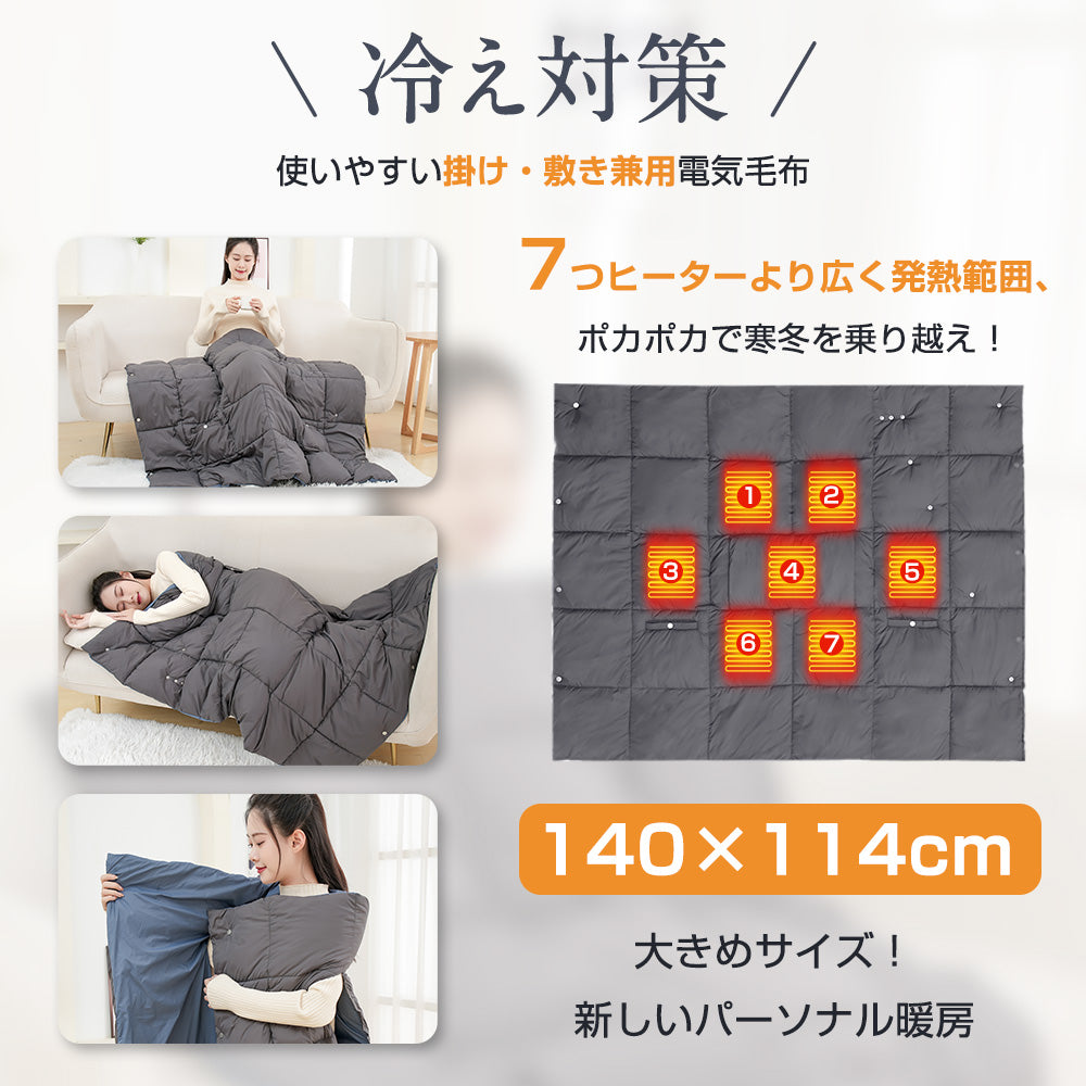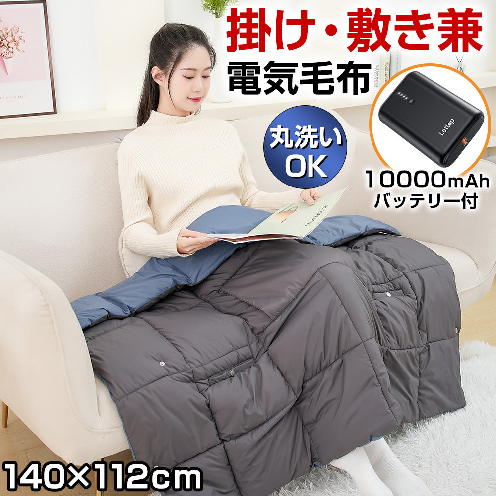 【バッテリー付き】 電気毛布 敷毛布 140×114cm 暖かい 電気敷毛布 電気敷き毛布 ひざ掛け毛布 USB給電式 電気ブランケット 3段階温度調節 冬対策 プレゼント