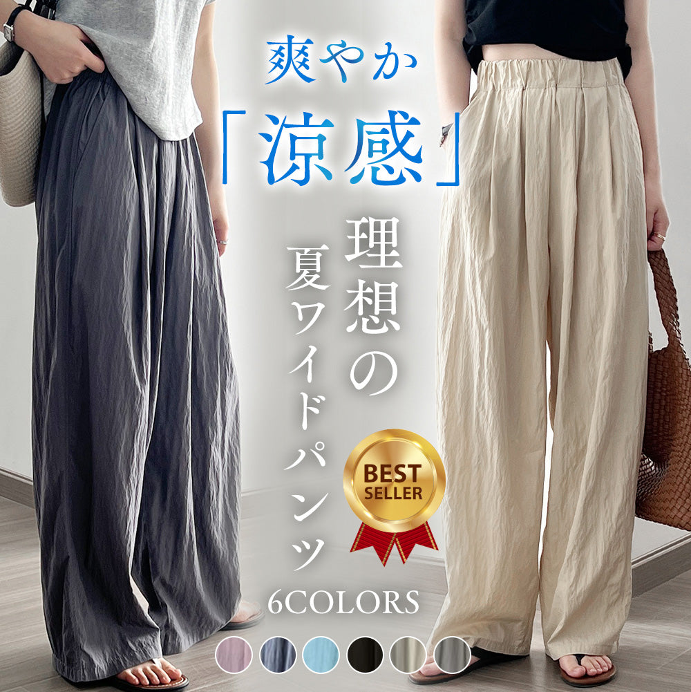 パンツ ワイドパンツ レディース 春夏 涼感 接触冷感 ロング丈 ハイウエスト 美脚見え タック入り ゆったり 楽ちん 後ろゴム 体型カバー おしゃれ 大きいサイズ対応 通勤 カジュアル 上品 きれいめ イージーパンツ 新作 着回し抜群