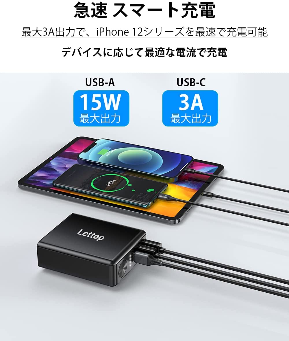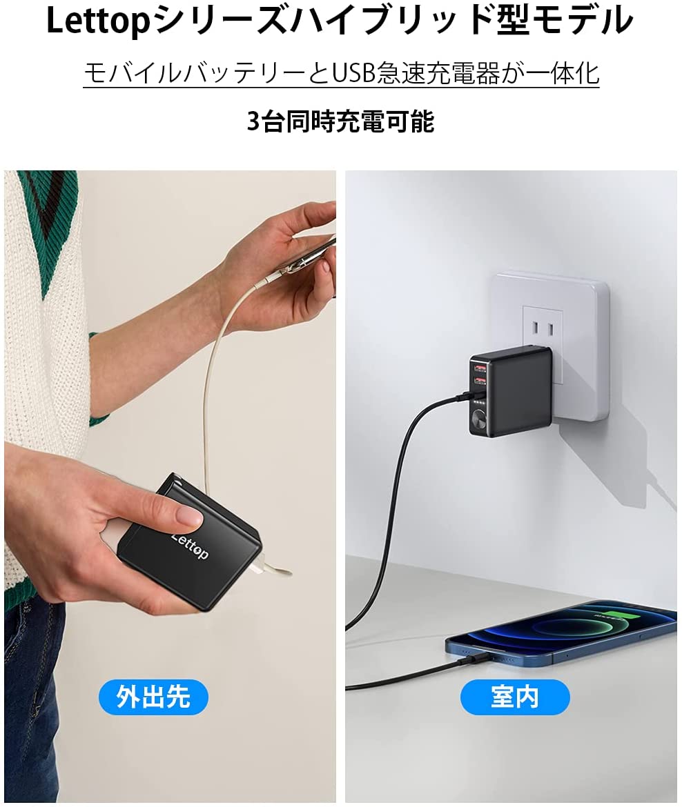 モバイルバッテリー 大容量 プラグ付き 3台同時充電 6000mAh USB急速充電器 ACアダプター スマホ充電器 コンセント USB-C PSE認証済(CDQ-ST30)