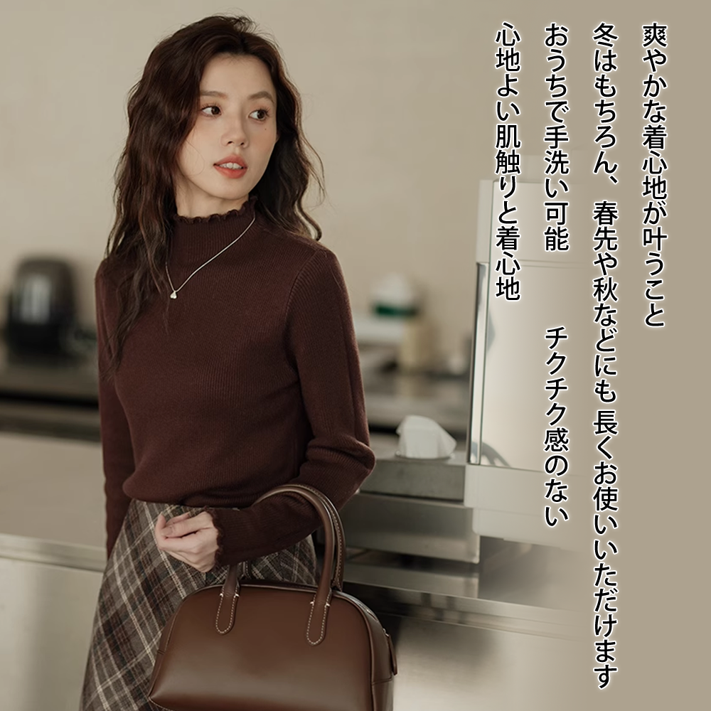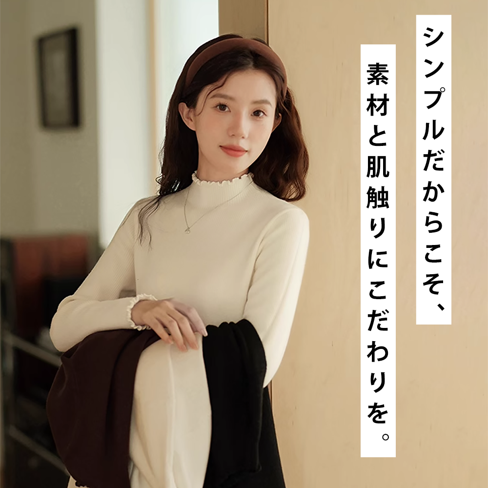 レディース トップス ニット ハイネック 長袖 タートルネック セーター インナー レイヤード 薄手 軽量 ストレッチ タイト 無地 万能 着回し もっちり 肌触り
