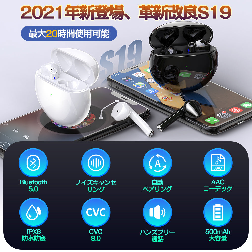 ワイヤレスイヤホン bluetooth イヤホン 完全 ワイヤレス(EJ-S19)