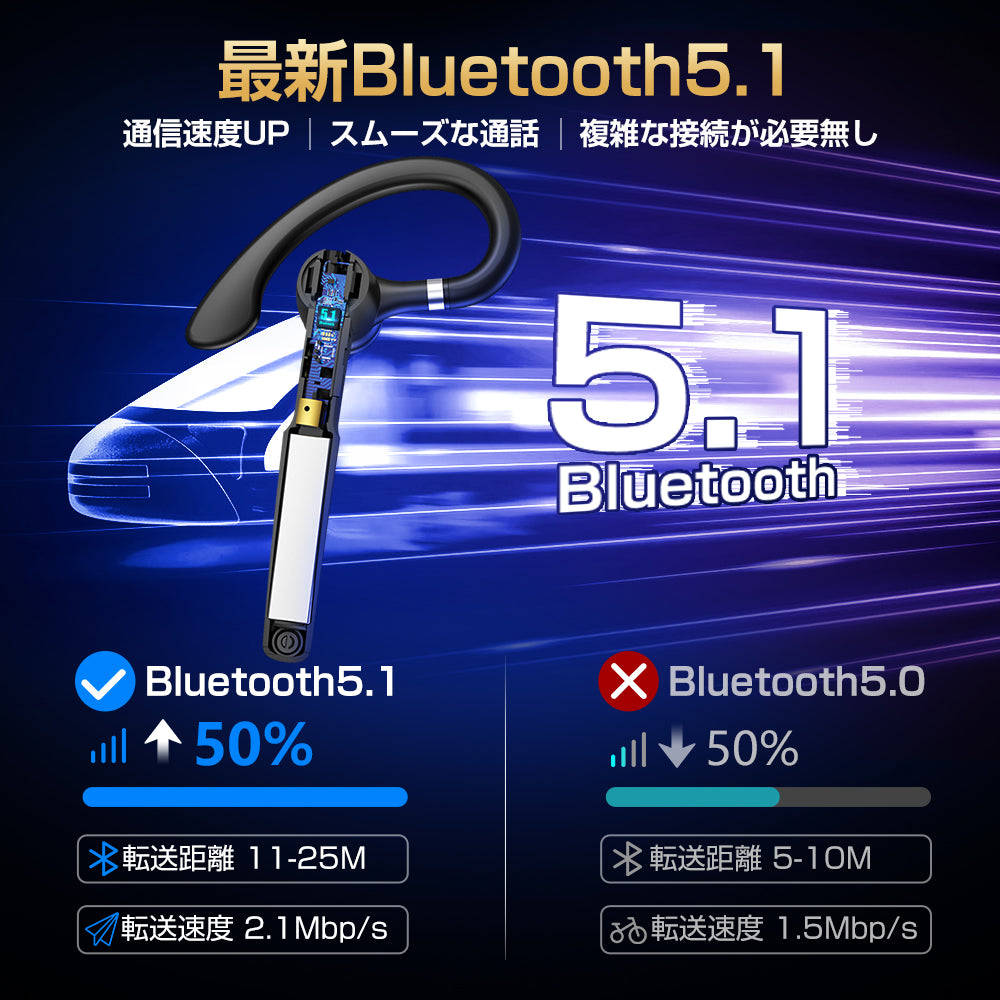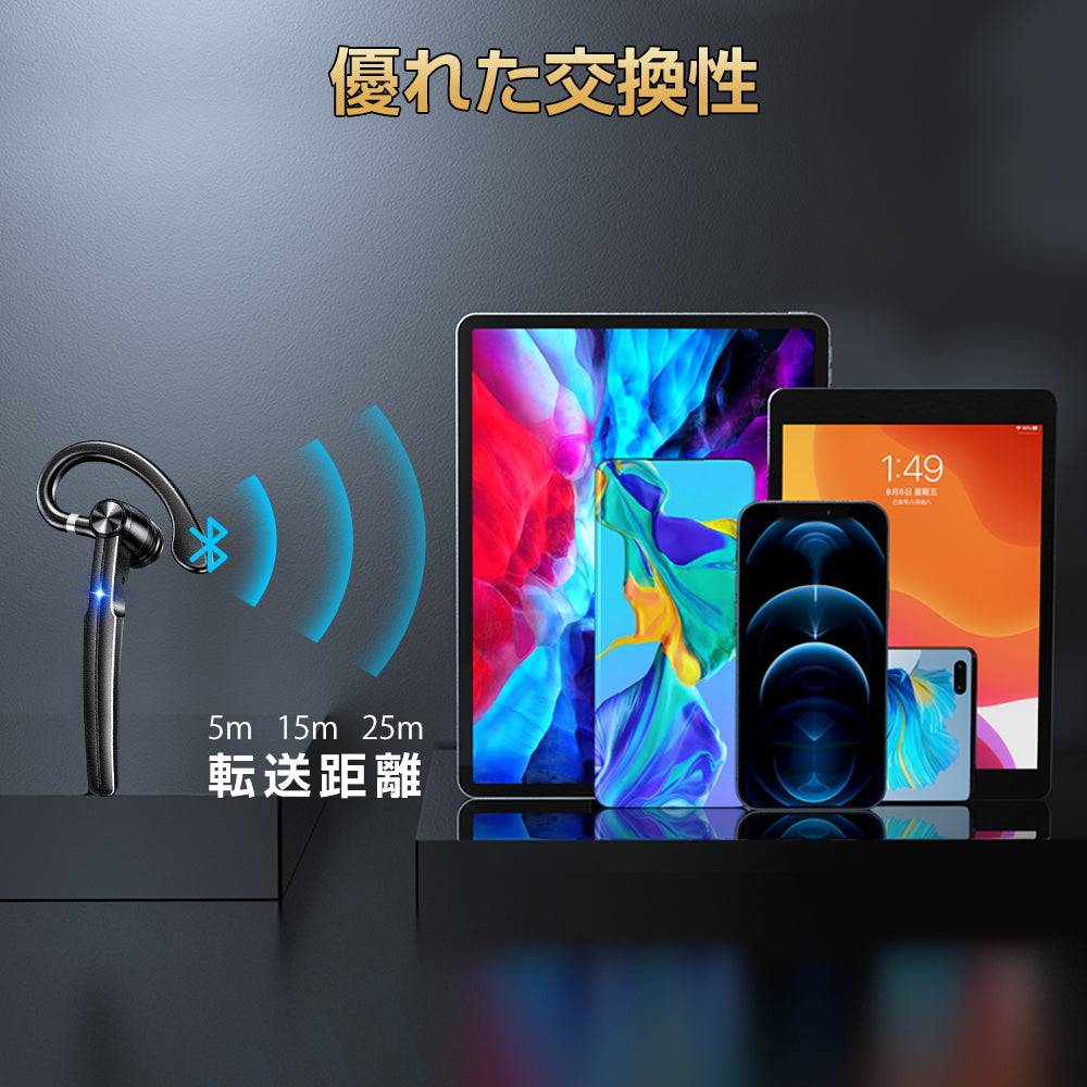 ワイヤレスイヤホン Bluetooth5.1 耳掛け型 片耳 ビジネス Bluetoothイヤホン 12時間連続 ハンズフリー通話 マイク内蔵 高音質 マイク内蔵 左右耳兼用