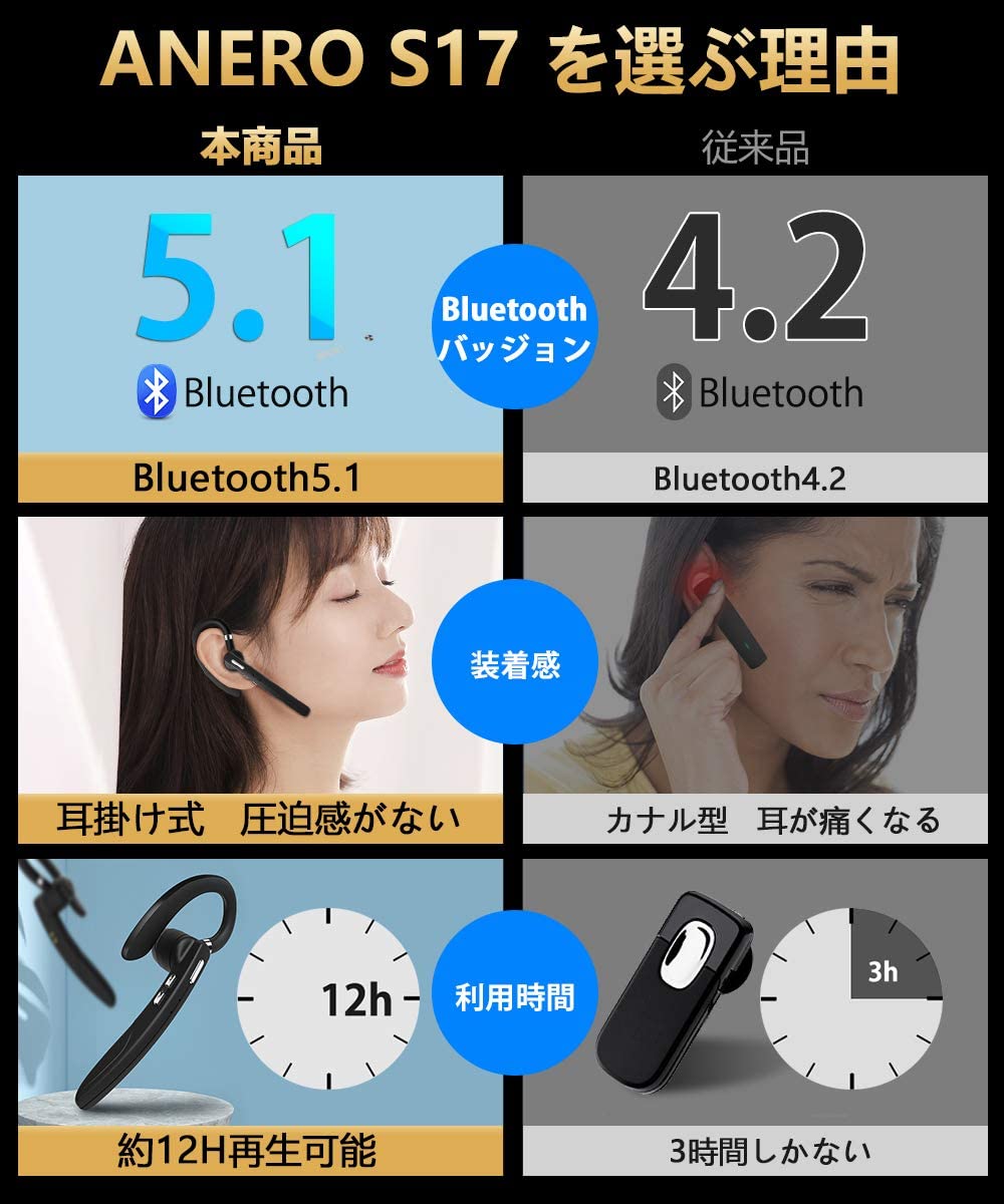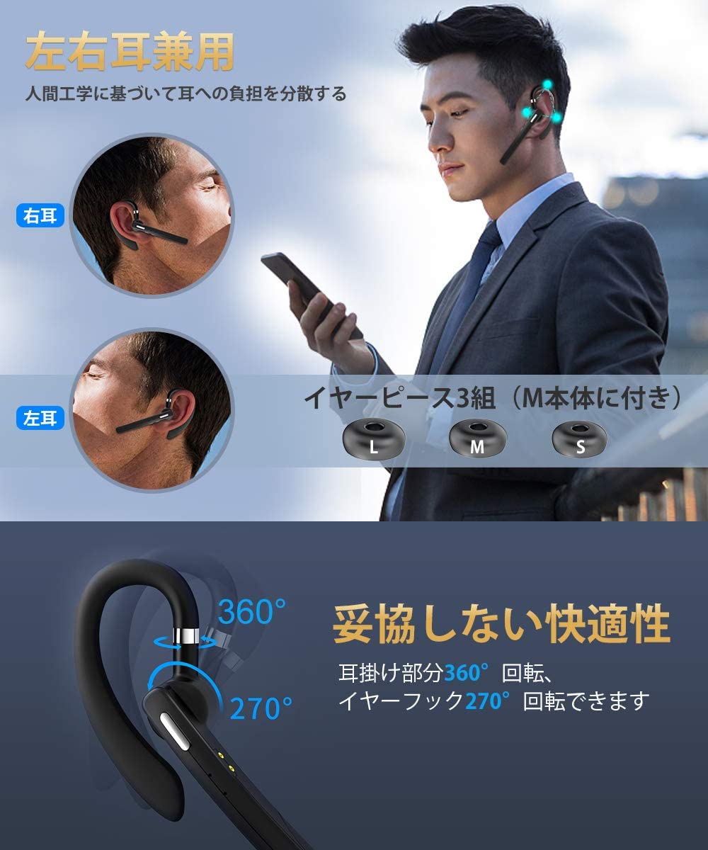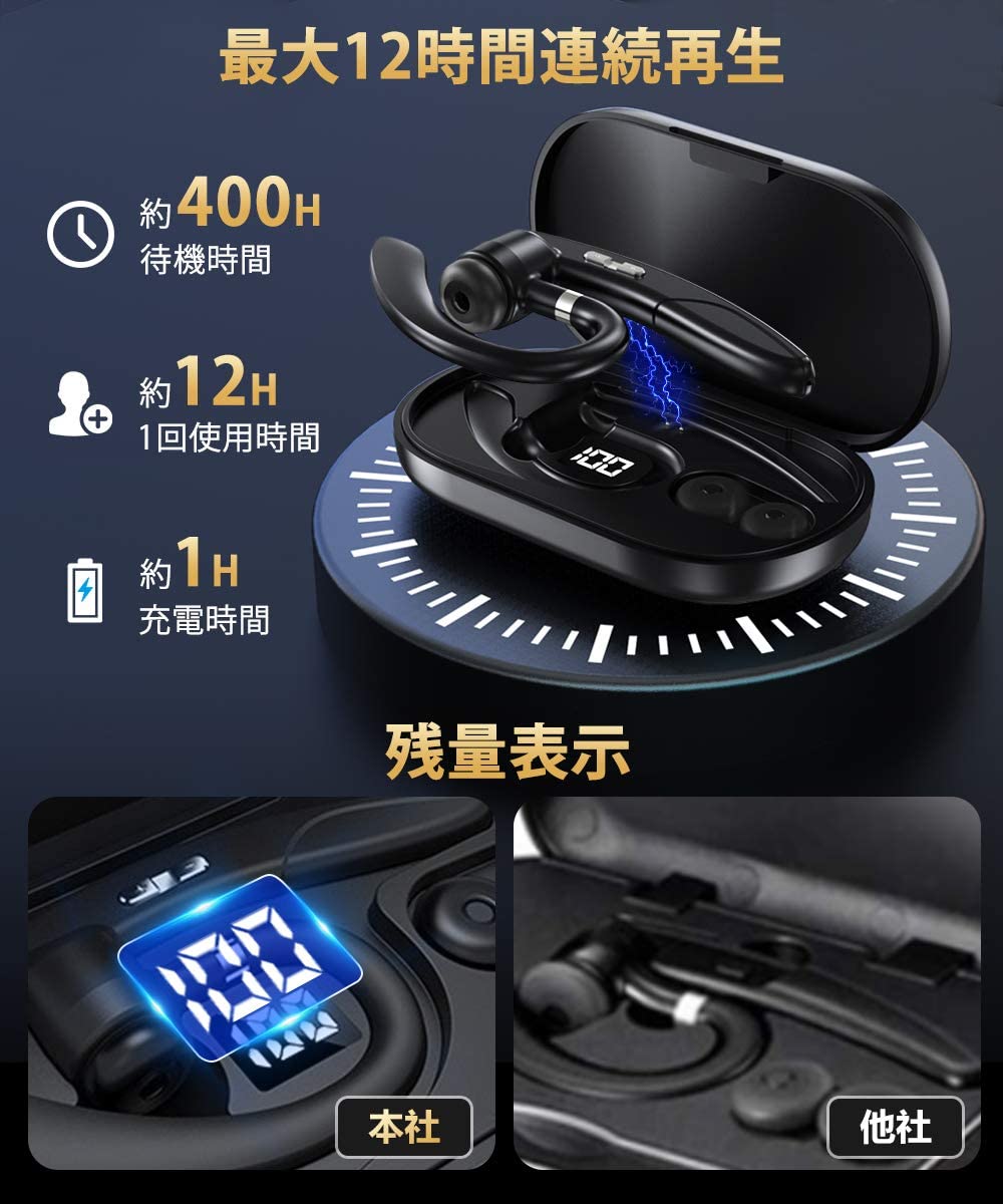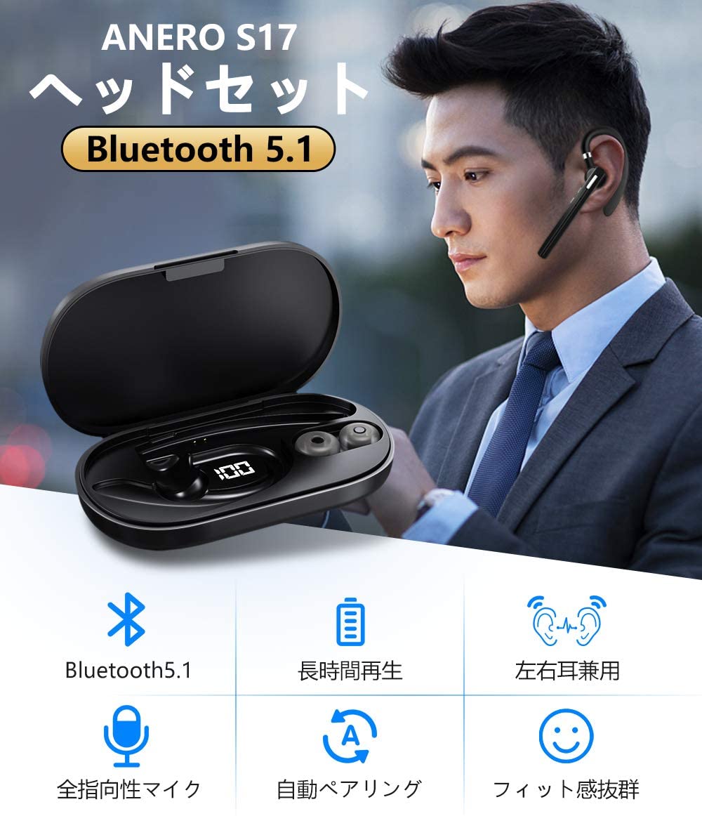 ワイヤレスイヤホン 片耳 Bluetooth5.1 耳掛け型 ビジネス Bluetoothイヤホン 12時間連続 ハンズフリー通話 マイク内蔵 高音質 マイク内蔵 左右耳兼用(S17)