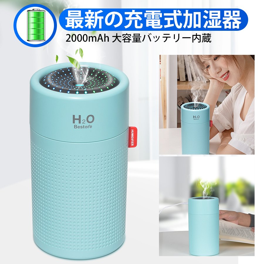 加湿器 アロマ おしゃれ 750ml 大容量 超音波式 バッテリー付き 卓上 オフィス 部屋 車載 ペットボトル USB充電式 LEDナイトランプ 空焚き防止 送料無料 (J625)