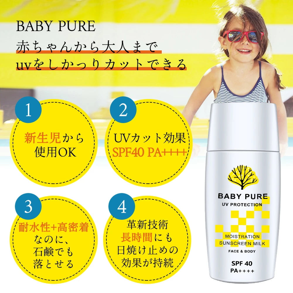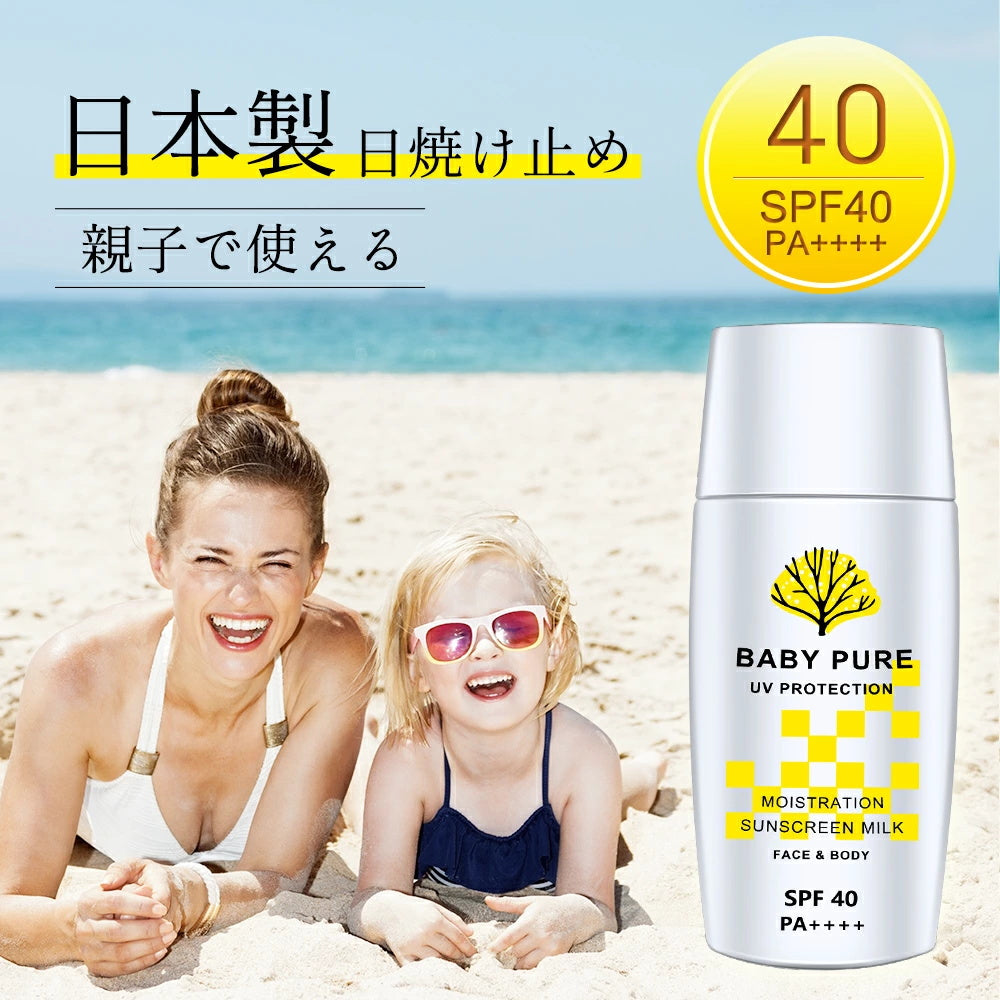 日焼け止め 子供 ミルク こども SPF40・PA++++ プロテクト BABY PURE 日焼けどめ ひやけどめ uv対策 uvケア 保湿 紫外線対策