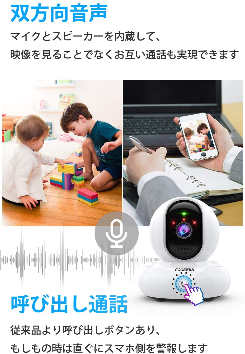 監視カメラ wifi 小型 ネットワークカメラ 1080P 200万高画素 遠隔操作 防犯カメラ ペット 子供 見守り 呼び出し通話
