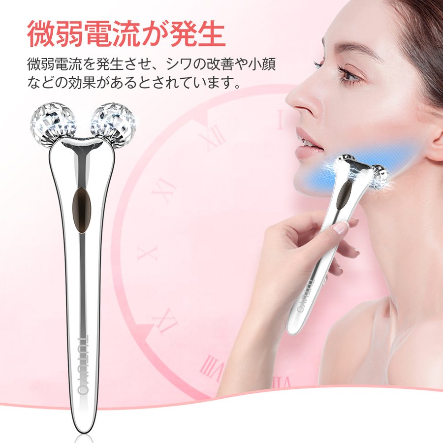 美顔ローラー ミニ マイクロカレント 小顔ローラー リフトアップ 美顔器 小顔 美容ローラー フェイスローラー 顔 マッサージ 防水 ギフト プレゼント (KB226)