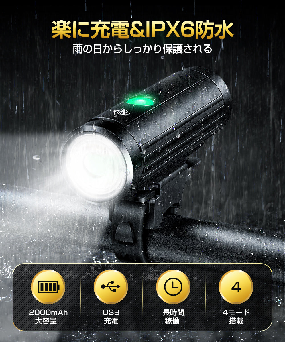 自転車 ライト 2000mAh 大容量 USB充電式 小型 超軽量 LED 800ルーメン 明るい (Z-02)