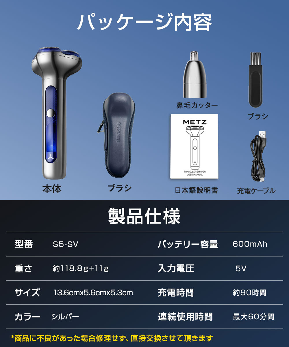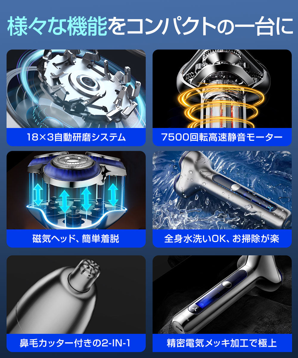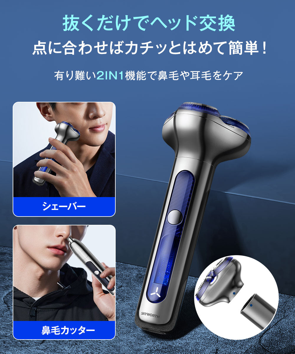 電気シェーバー シェーバー メンズシェーバー 磁気インターフェース式 鼻毛カッター 髭剃り USB充電式 長時間稼働 乾湿両用 回転式 急速充電 IPX7防水S5-SV