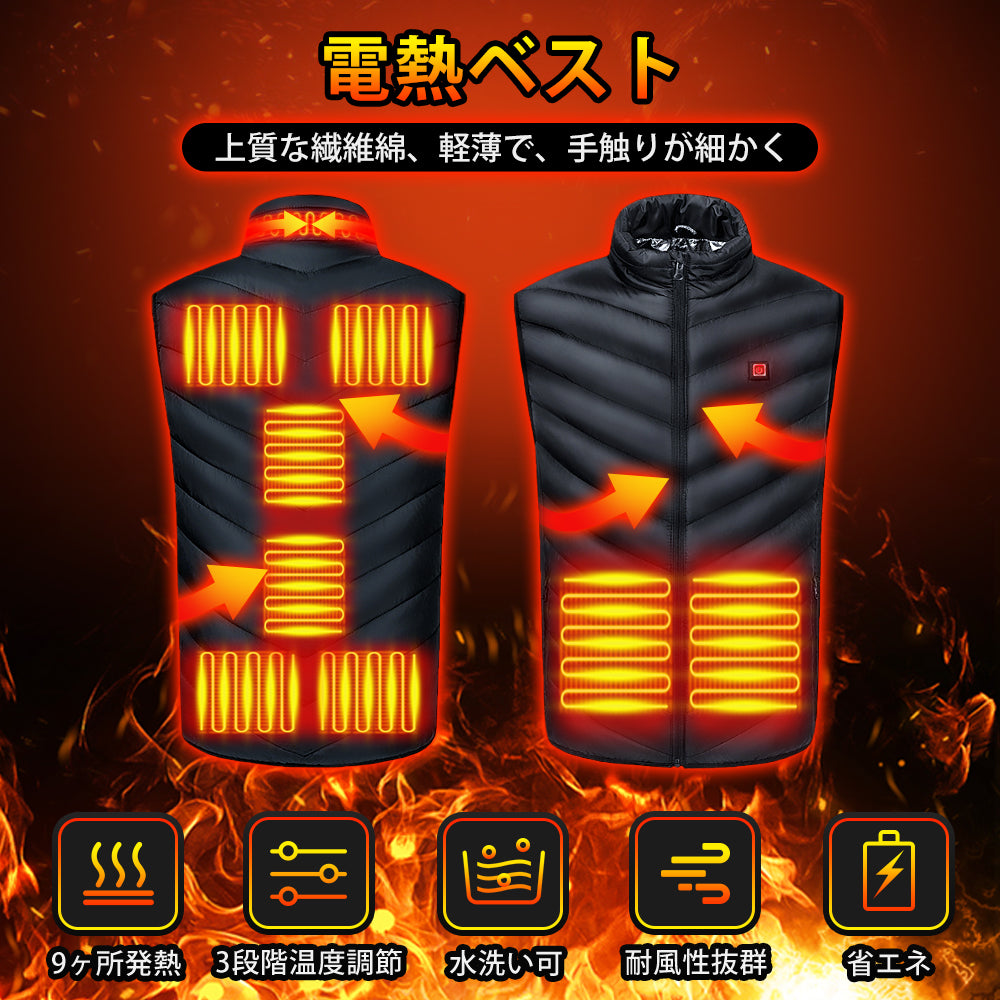 【パッケージ内容】電熱ベスト 本体*1、バッテリー*1(出力は5V・2A)