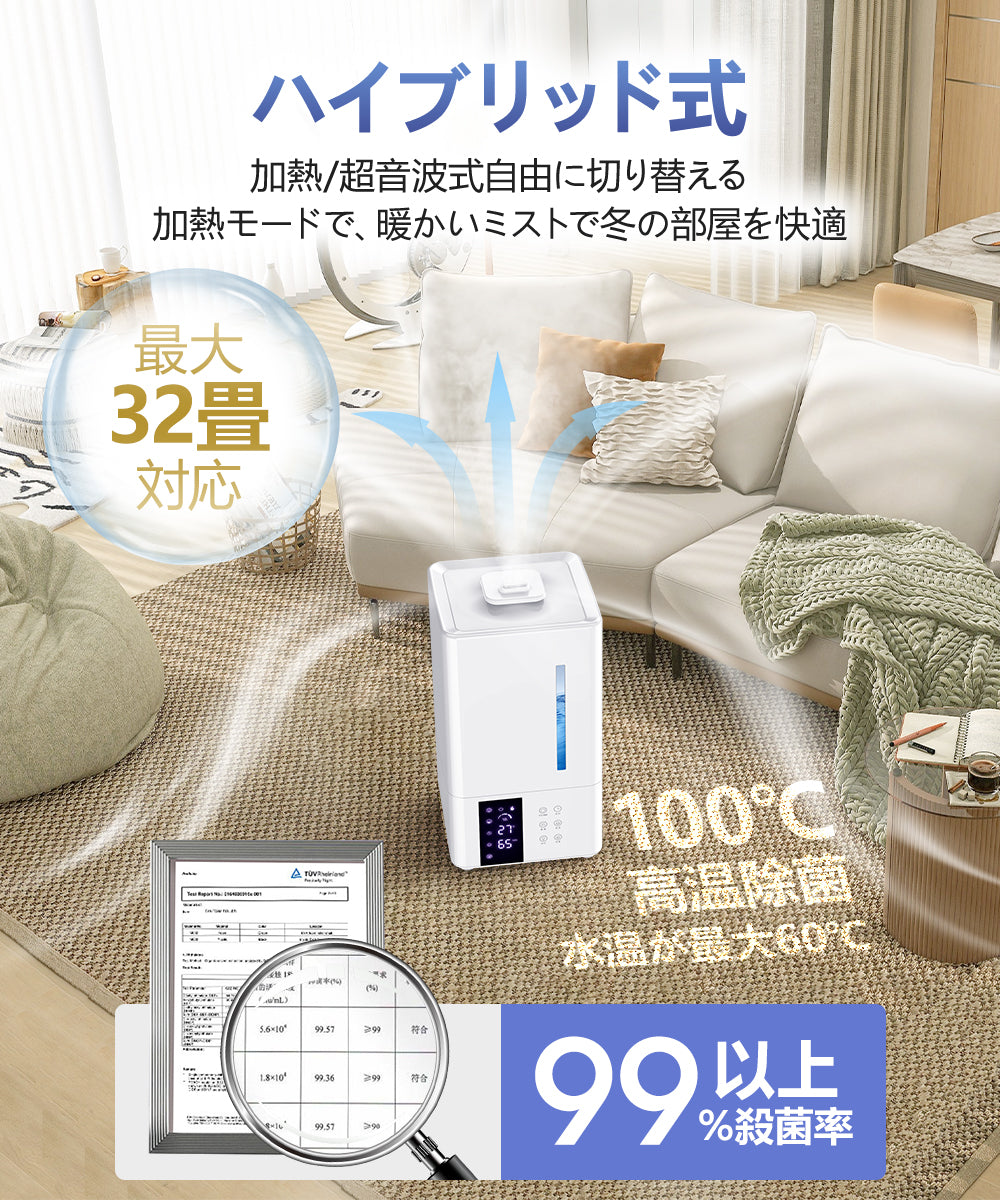 【2024最新】加湿器 ハイブリッド加湿器 卓上 加熱式(JSQ-2402)