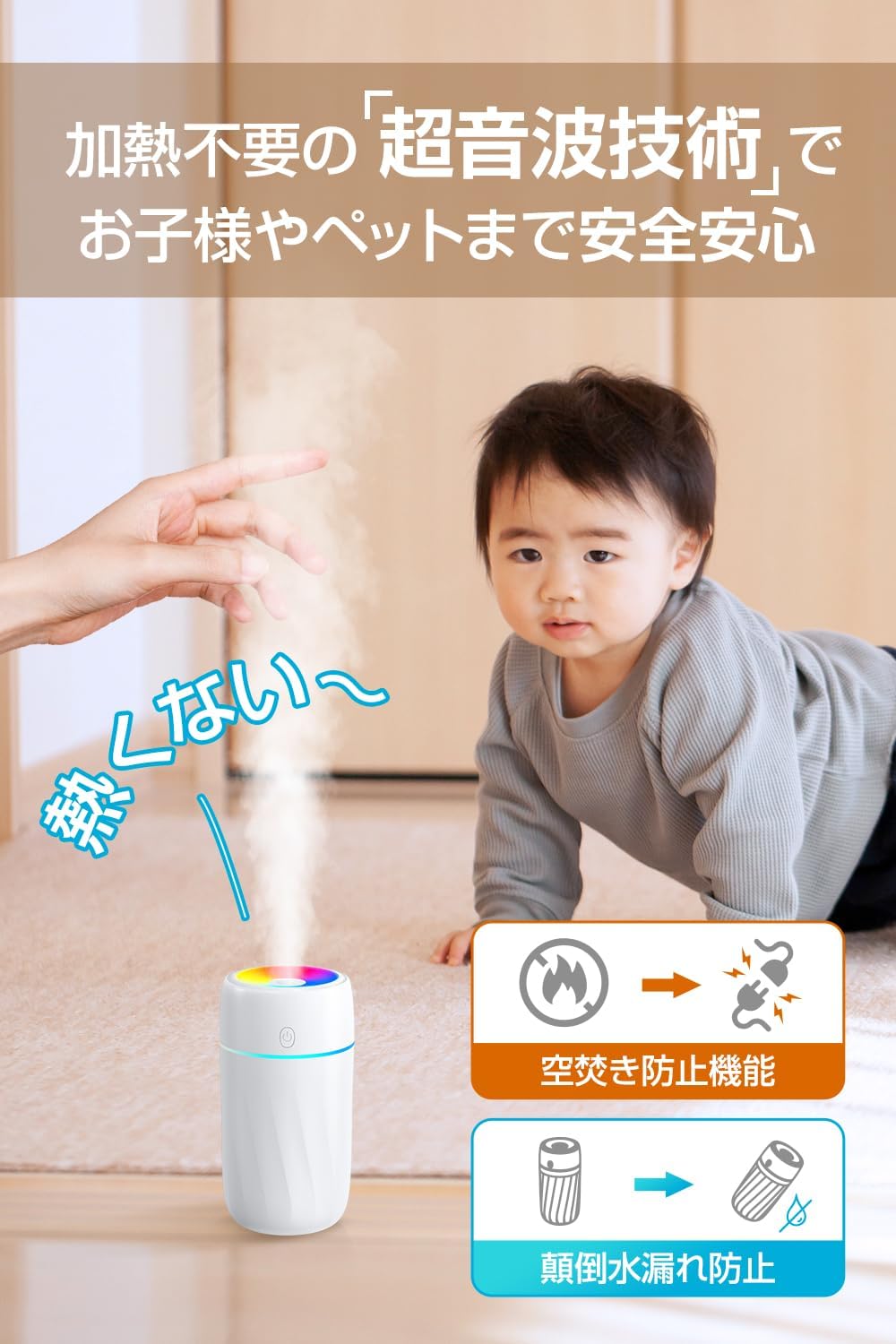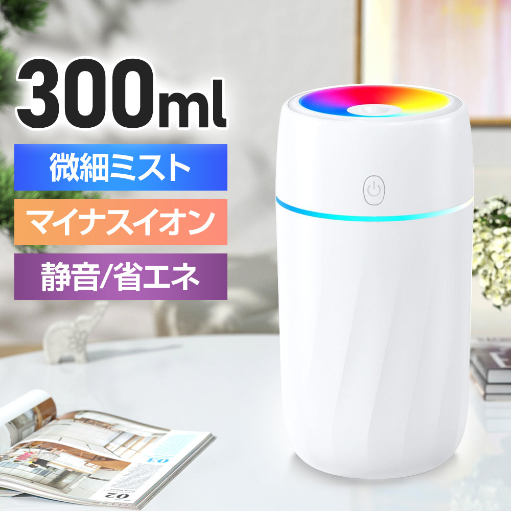 【2024静音型・アロマ対応】 卓上加湿器 USB 給電式 300ml 大容量 自動電源オフ 節電 7色LEDライト 2つ加湿モード 自動シャットオフ 乾燥/花粉症対策 冬対策