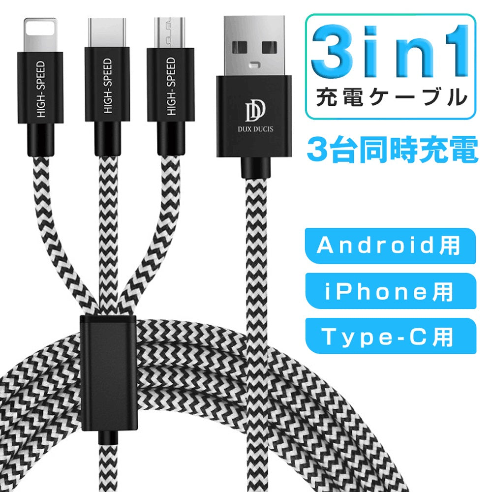 【商品仕様】・ブランド:DUX DUCIS・型番:Family-3-in-1・輸出電流:5V/2.4A・ケーブル長:100cm+25cm・対応機種:Lighting/Micro/Type-C・素材:アルミニウム合金+ナイロン編み込み