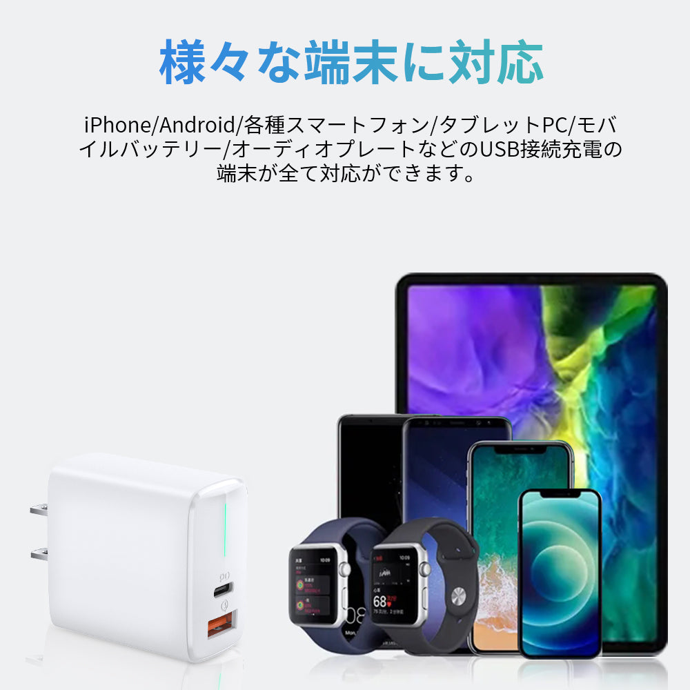 ACアダプター 20W快速充電 USB充電器 iPhone13対応 2台同時充電 PD3.0 Type-c充電器 USBアダプター PSE認証 スマホ充電器 iPhone13充電器 おすすめ