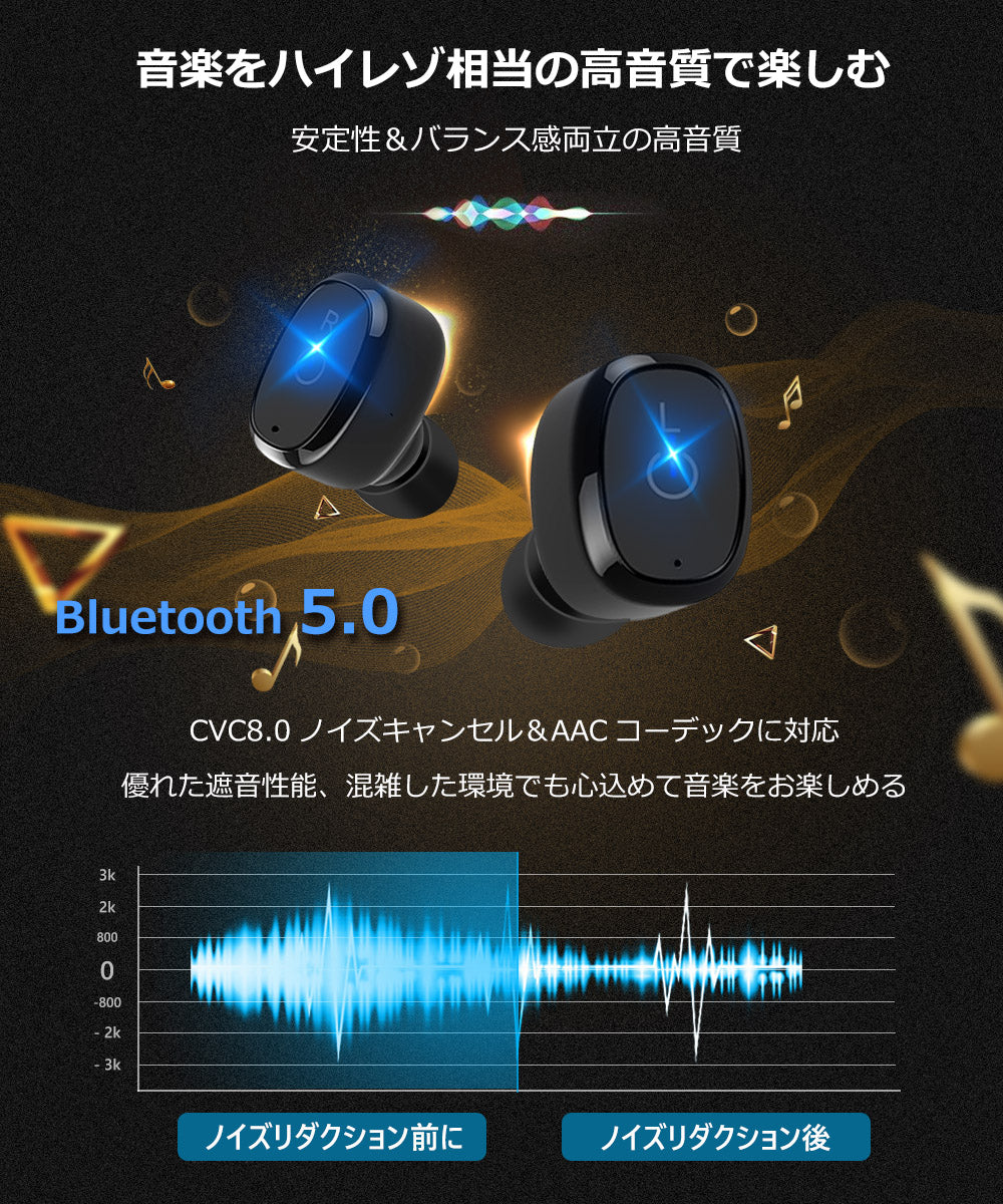 Bluetooth イヤホン ワイヤレスイヤホン 40時間連続駆動 ブルートゥース イヤホン