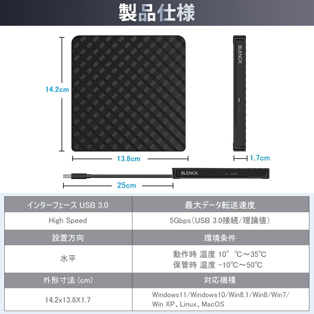 DVDドライブ TYPE-Cコネクター付き 外付け 高速転送 CD プレイヤー(GQ-LW)