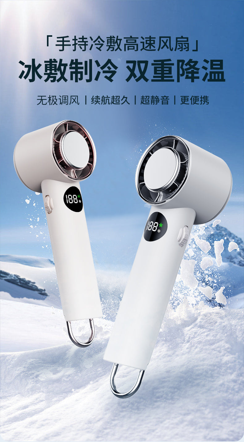 【F63】 ハンディファン 瞬間冷却 超軽量 手持ち扇風機 冷却プレート付 無段階風量調整