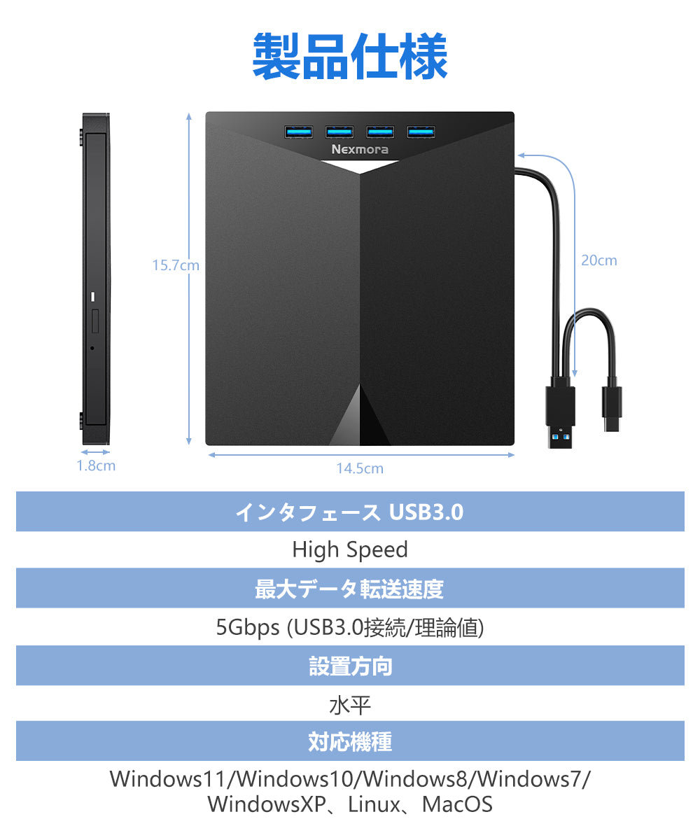 DVDドライブ CD/DVDプレイヤー ブルーレイドライブ GQ-DSMS3-BK