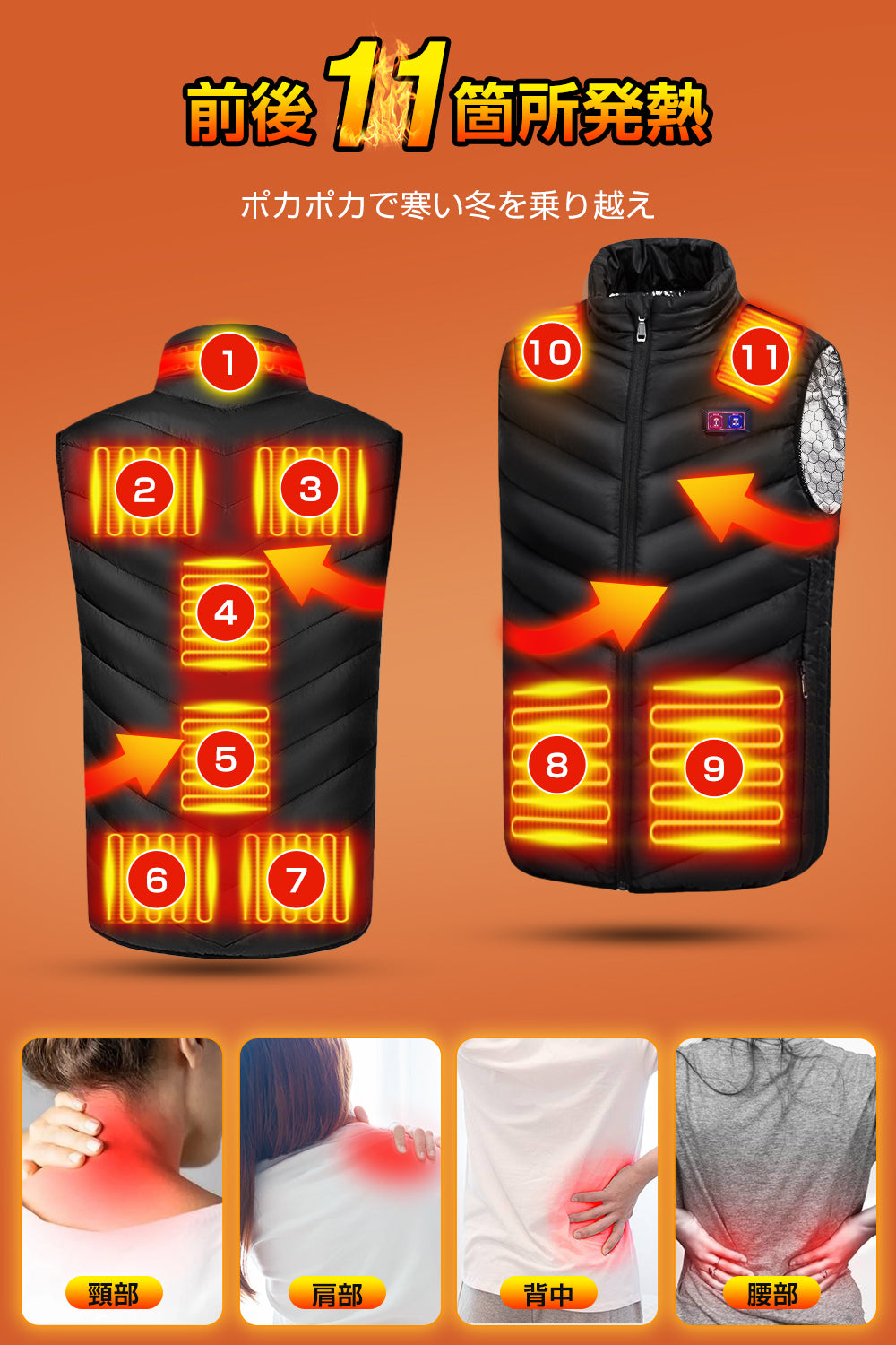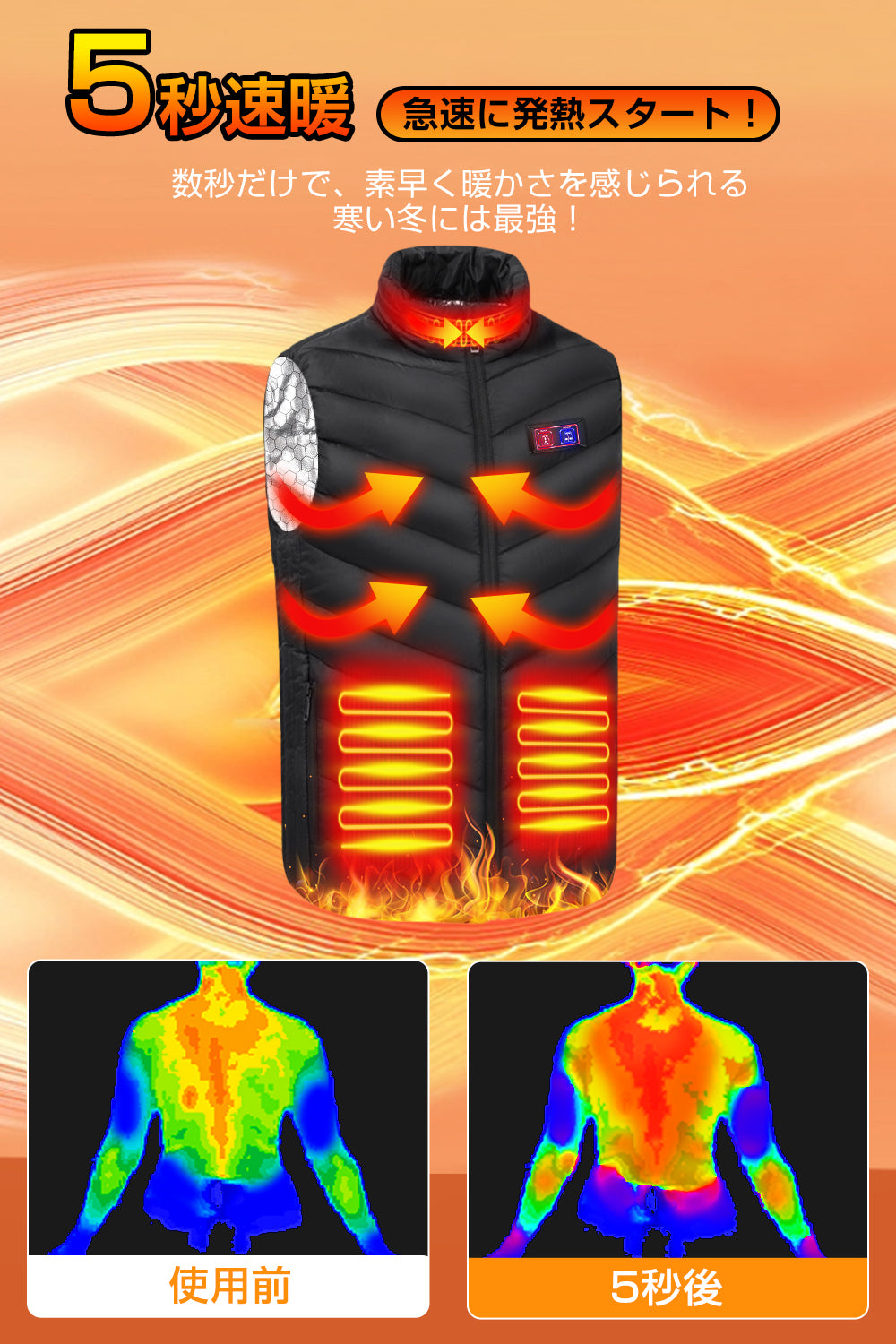 電熱ベスト 加熱ベスト 日本製ヒーター採用 速暖 3段階温度調整 USB給電 ヒートベスト 防寒ベスト ヒーターベスト 男女兼用 洗える 発熱ベスト ヒートジャケット 通勤/通学/屋外作業用 超軽量